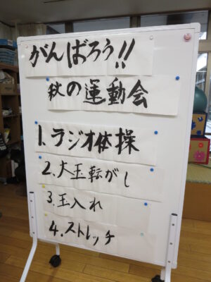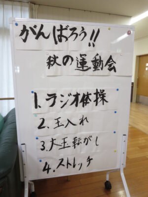 11月13日(木) に特養3階の運動会を開催しました。 この日もお天気は良かったのですが、風が冷たく外は寒いため、ユニットで開催しました。