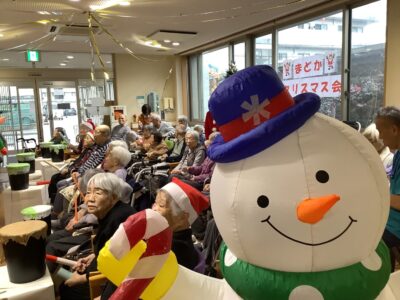 12月25日、まどかでクリスマス会を行いました。 サンタクロースとトナカイ、雪だるまに扮した職員と共に、 クリスマスソングの定番である「ジングルベル」「赤鼻のトナカイ」 「きよしこの夜」をみんなで合奏しました。 皆様、最 […]