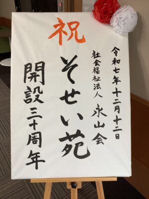 永山会そせい苑がめでたく30周年を迎えました。 まどかⅡ番館デイサービスも本体施設にならい30年が迎え られる様、日々ご利用者のケアや職員の指導、綺麗で清潔な施設の維持を続けていきたいと思います。 まどかⅡ番館デイサービ […]
