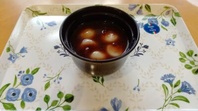 鏡開きも過ぎたということで、本日はそせい苑の栄養士お手製のおぜんざいでした! ほどよい甘さでおいしい!ということで、利用者様には大好評でした。