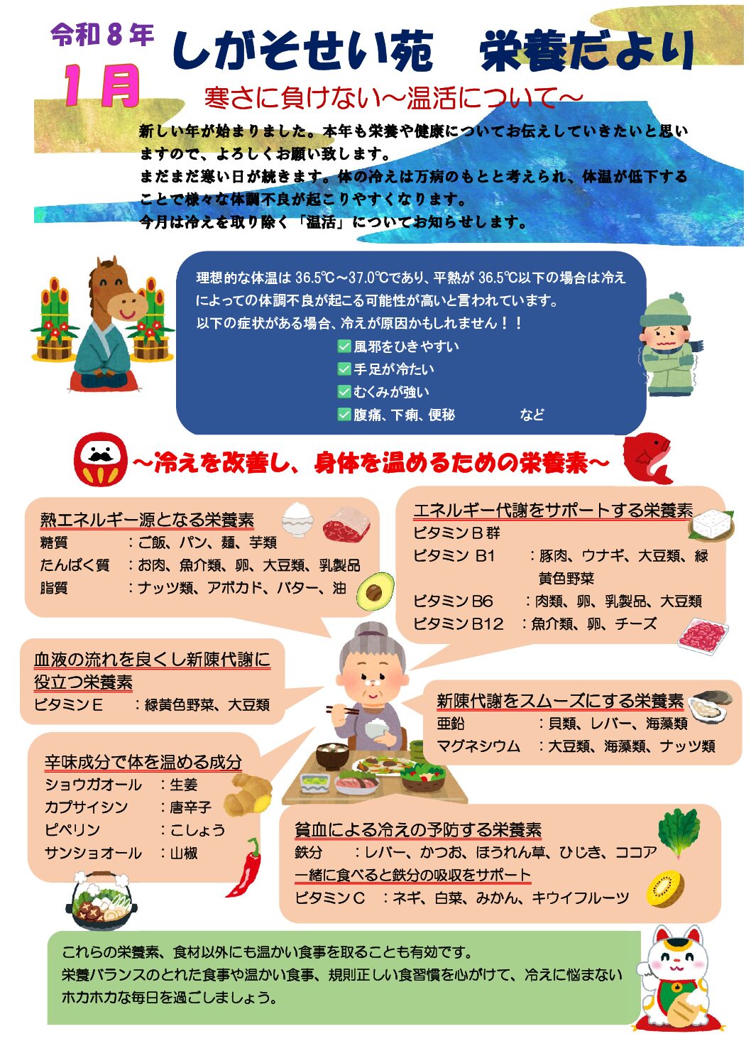 新しい年がスタートしました✨本年も、毎日の元気につながる「栄養」と「健康」のお話を、楽しくお届けしていきます。どうぞよろしくお願いいたします! さて、冬本番⛄寒い日が続くと、体が冷えてしまいがちですね。「冷えは万病のもと […]