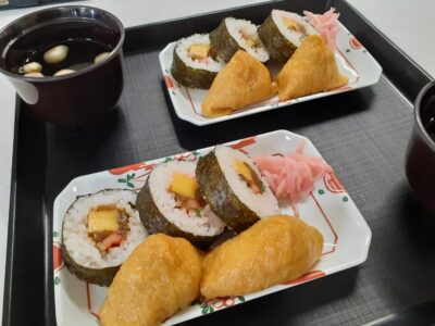2月3日 火曜日 今日は「節分」です。 お昼ご飯に、巻き寿司といなり寿司がでました。