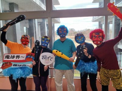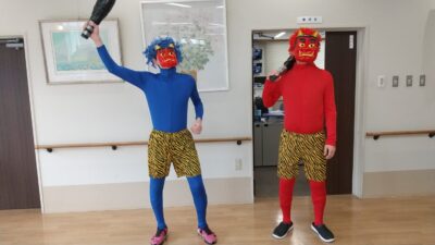 2月3日 火曜日の午後… そせい苑に、赤鬼と青鬼がやってきました。