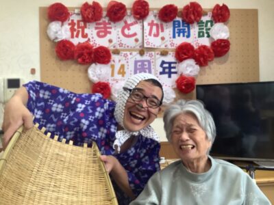 2月3日は節分の日、まどかに赤鬼、青鬼が現れました。 金棒でご利用者に襲いかかります。 豆をぶつけて鬼を追い払います。楽しそうです。 ご利用者に力いっぱい豆をぶつけられ、鬼は退散しました。 今年もご利用者に福が訪れますよ […]