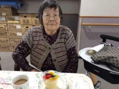 3月生まれの方の、お誕生日会を行いました。 今月はフルーツたっぷりのプリンアラモードでお祝いしました。 いついつまでも、お元気でお過ごしください。
