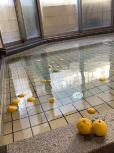 皆様「いい匂いやな」「そんな季節か」と湯舟に浮く柚子を手に取りながら入浴中に話しておられました。