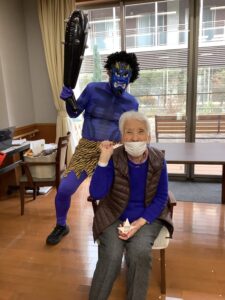 今年も2月3日に鬼がやってきました。去年の鬼より恰幅の良い、鬼らしい鬼でデイサービスの皆様、「どっしりしてるな」と喜ばれ、