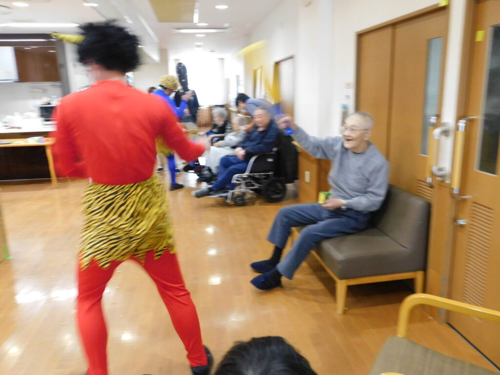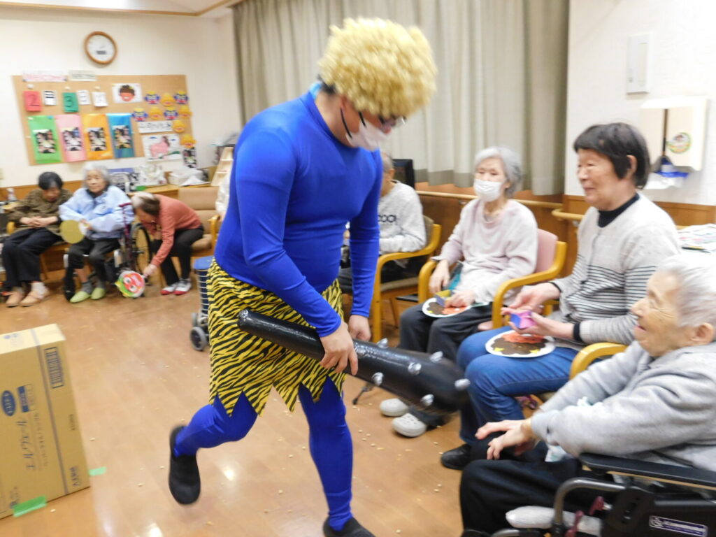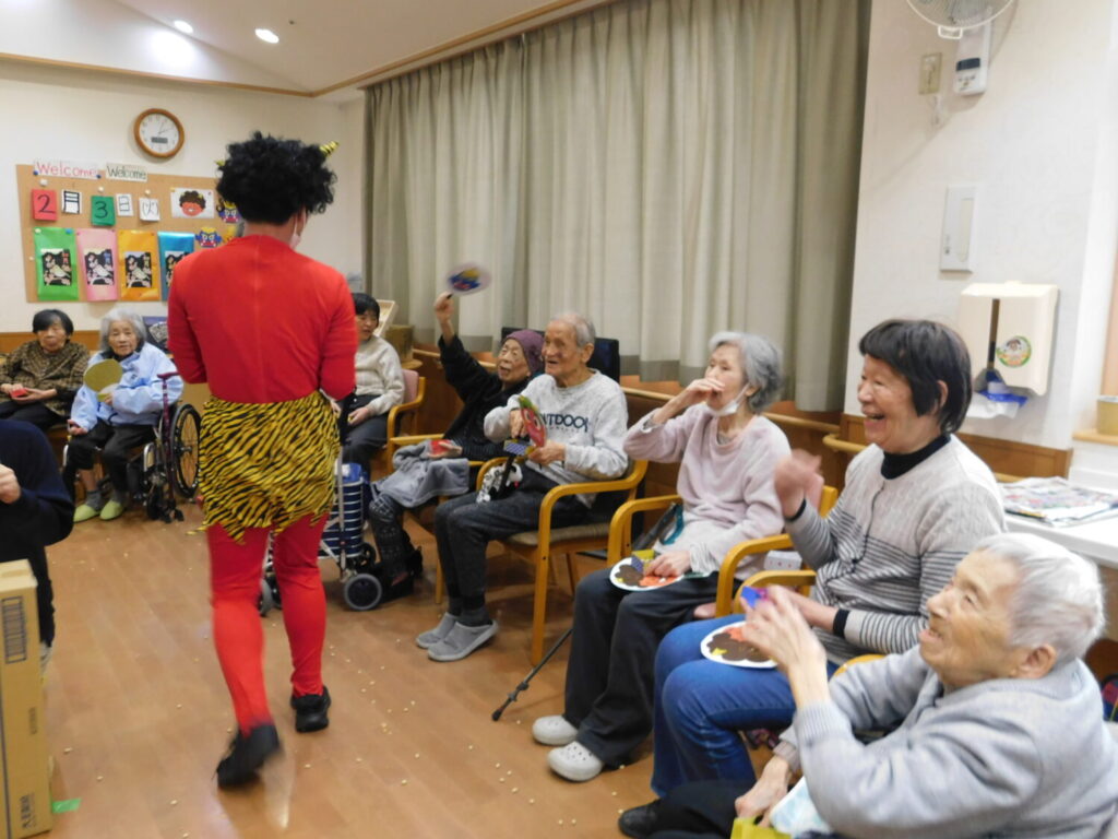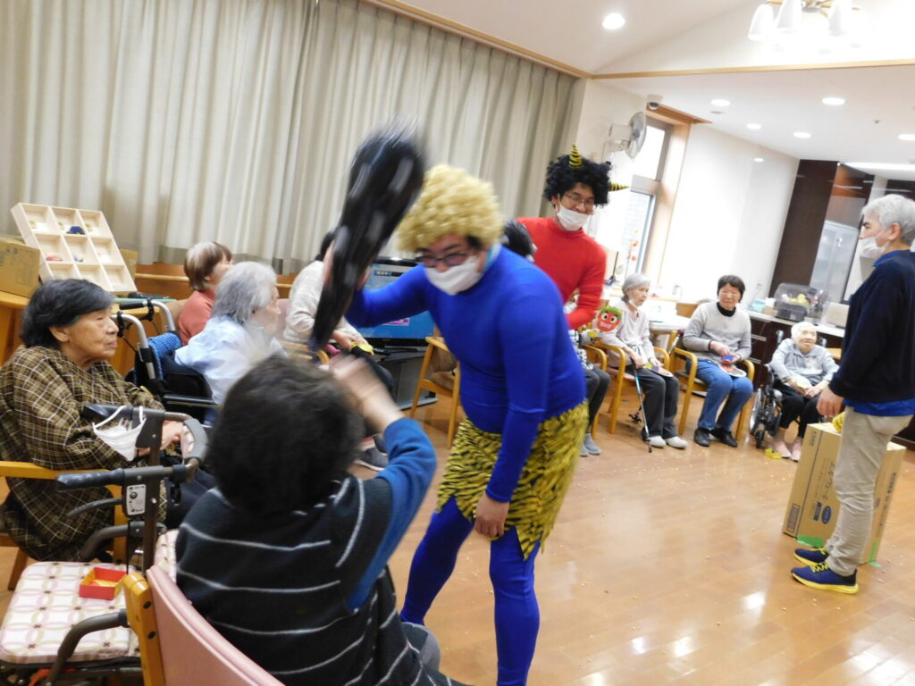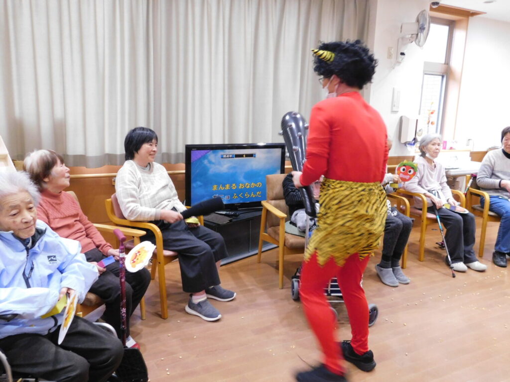 ご利用者に力いっぱい豆をぶつけられ、鬼は退散しました。 今年もご利用者に福が訪れますように。 ※個人情報保護に関する同意を頂いている方のみ 掲載しております