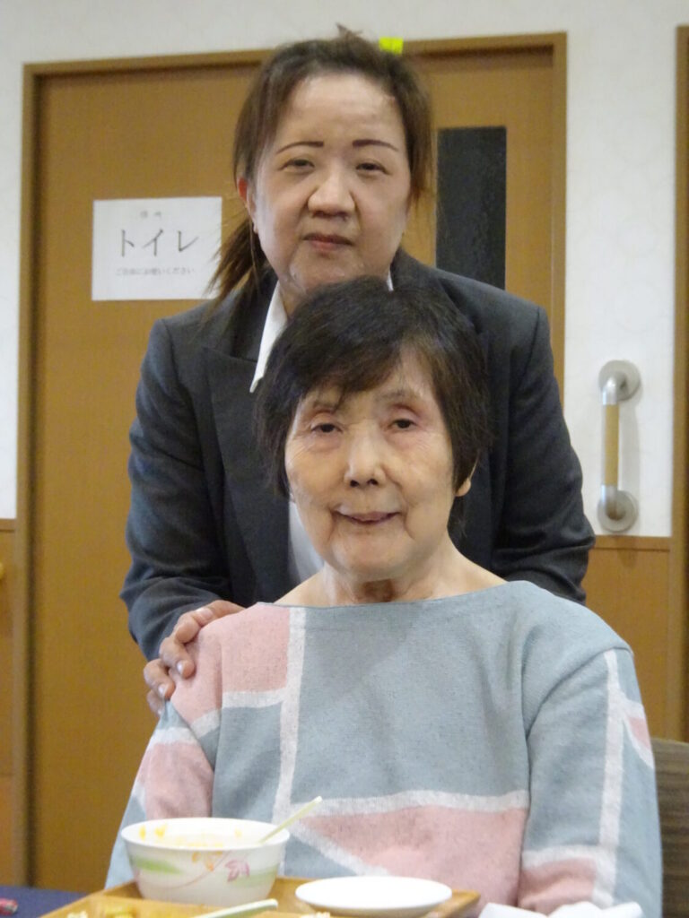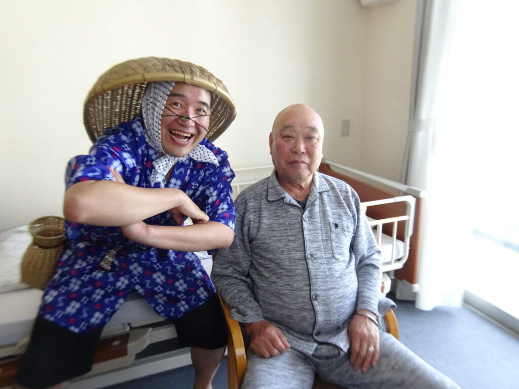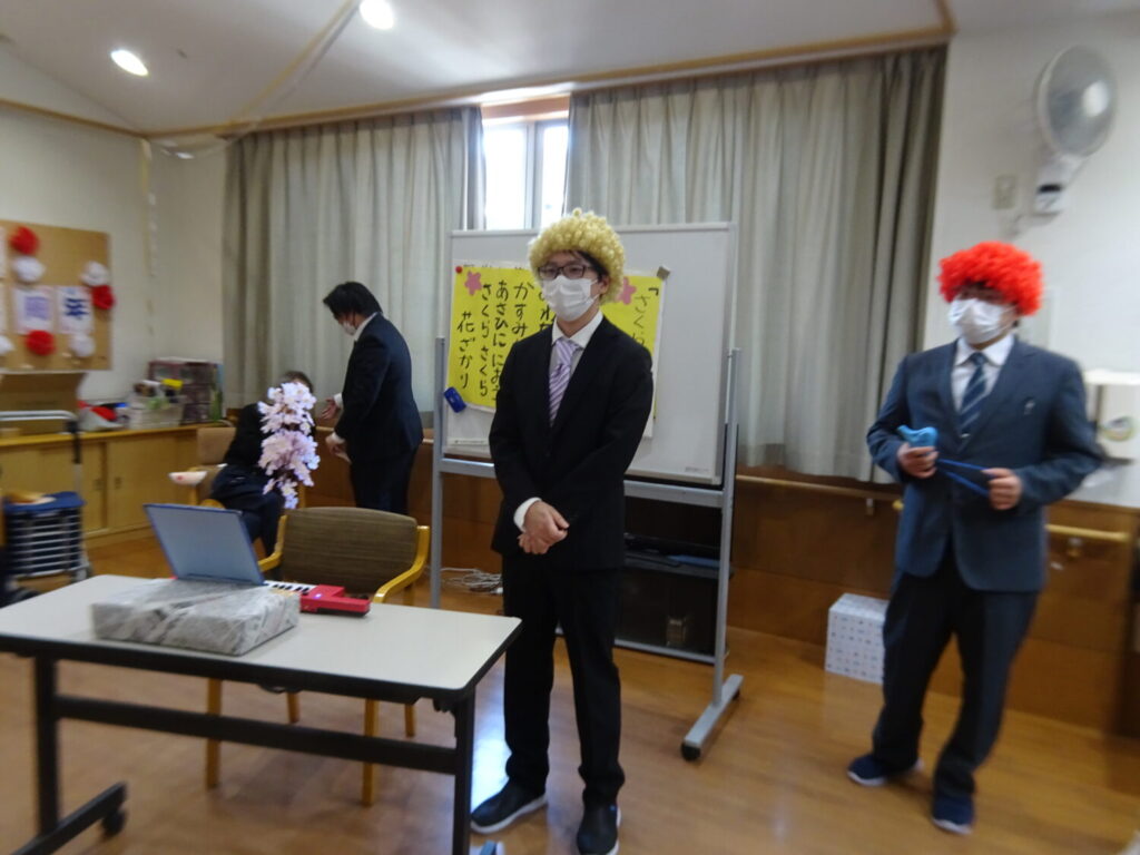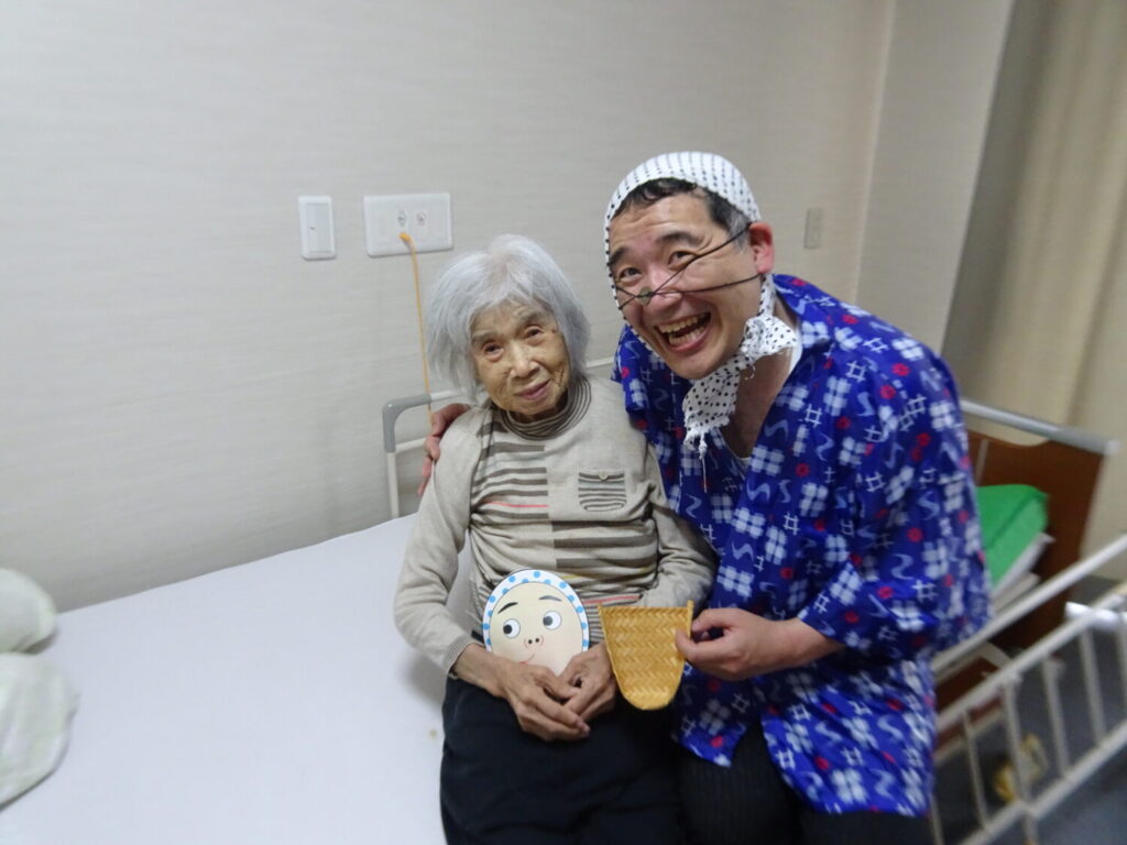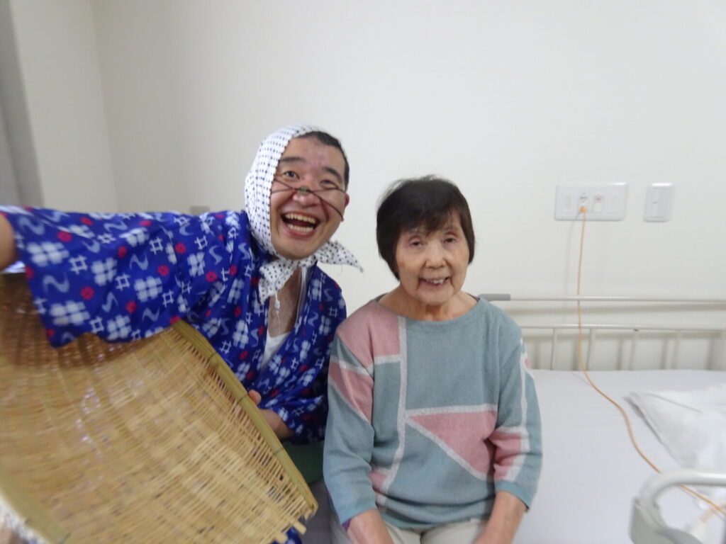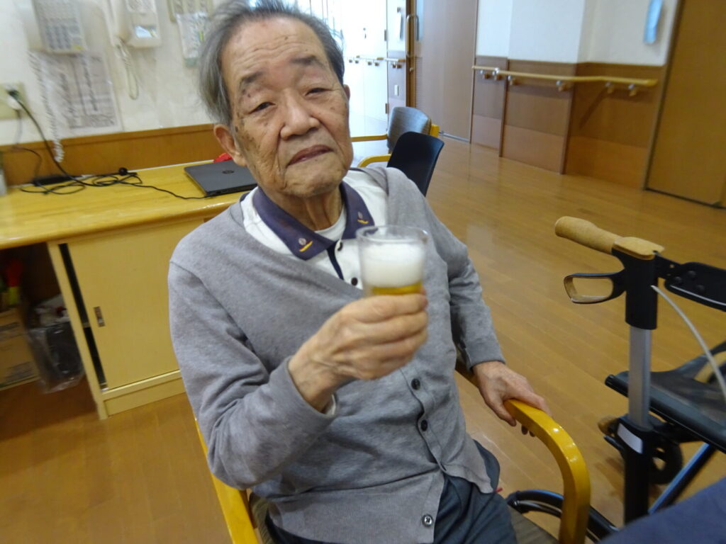 開催された祝賀会では、昼食に「大人のお子様ランチ」を召し上がっていただき、その後は職員によるピアノオカリナの合奏に合わせ、ご利用者の皆様との童謡の合唱、荒薦主任の十八番、どじょう掬いをご覧になっていただきました。