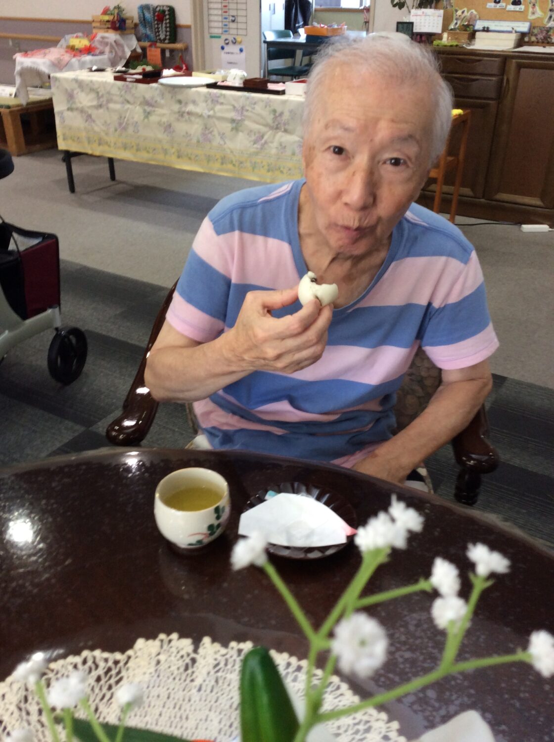 おやつには紅白饅頭を食べていただきました✨