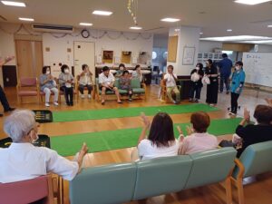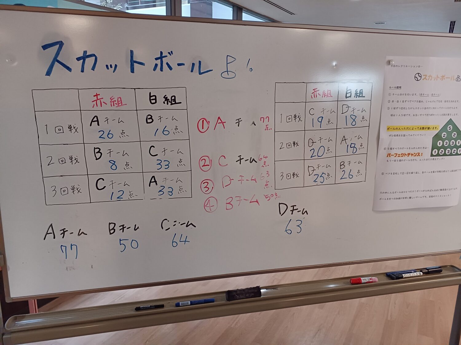 9月21日に大曲自治会のミニサロンをしがそせい苑で開催しました。 恒例となったチーム対抗ゲーム!今回はスカットボールというゲームを行いました。 力の入れ具合と頭脳戦で、合計点数をチームで競い合うゲーム 逆転したり、悔しい場面があったりと・・・今回も大いに盛り上がりました! 次回は来年2月の予定です。 このサロンを楽しみにしてくださっていると聞き、職員一同、励みになります! 次回のサロンもお待ちしています。次のチーム対抗ゲームもお楽しみに☆