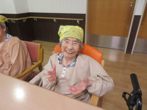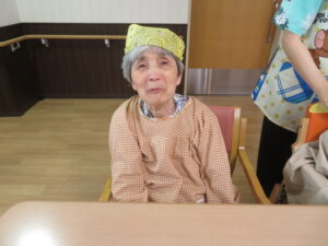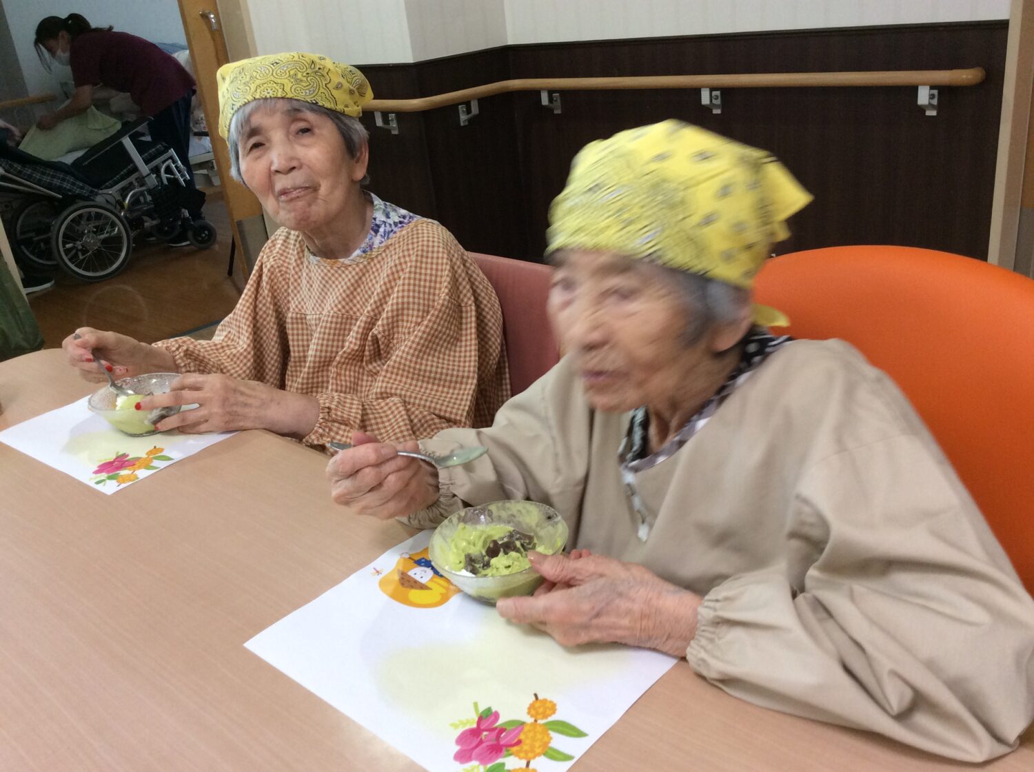 特養2階 三井之晩鐘ユニットでおやつに水ようかんを作りました。 水ようかんを切り分けて、トッピングをして食べました♡