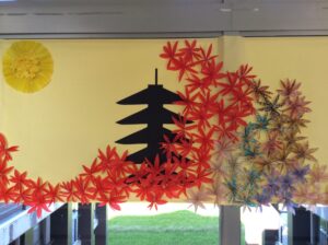 折り紙で作った紅葉が色鮮やかで 素敵に仕上がりました🍁✨