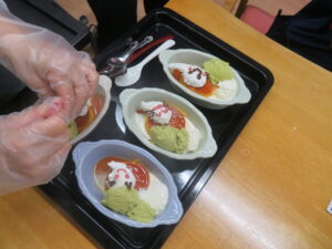 3階粟津之晴嵐ユニットで管理栄養士と一緒にかぼちゃプリンを作りました。 とっても美味しいプリンが出来上がり、皆さん美味しそうに食べておられました。