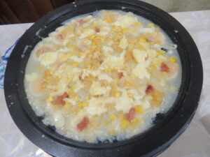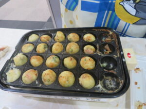 チーズやウインナー、ちくわ、明太マヨネーズなど 何種類か具材を用意して 変わり種のたこ焼きを食べていただきました。