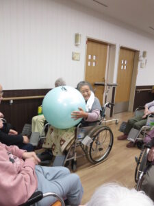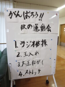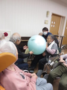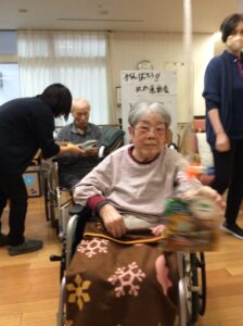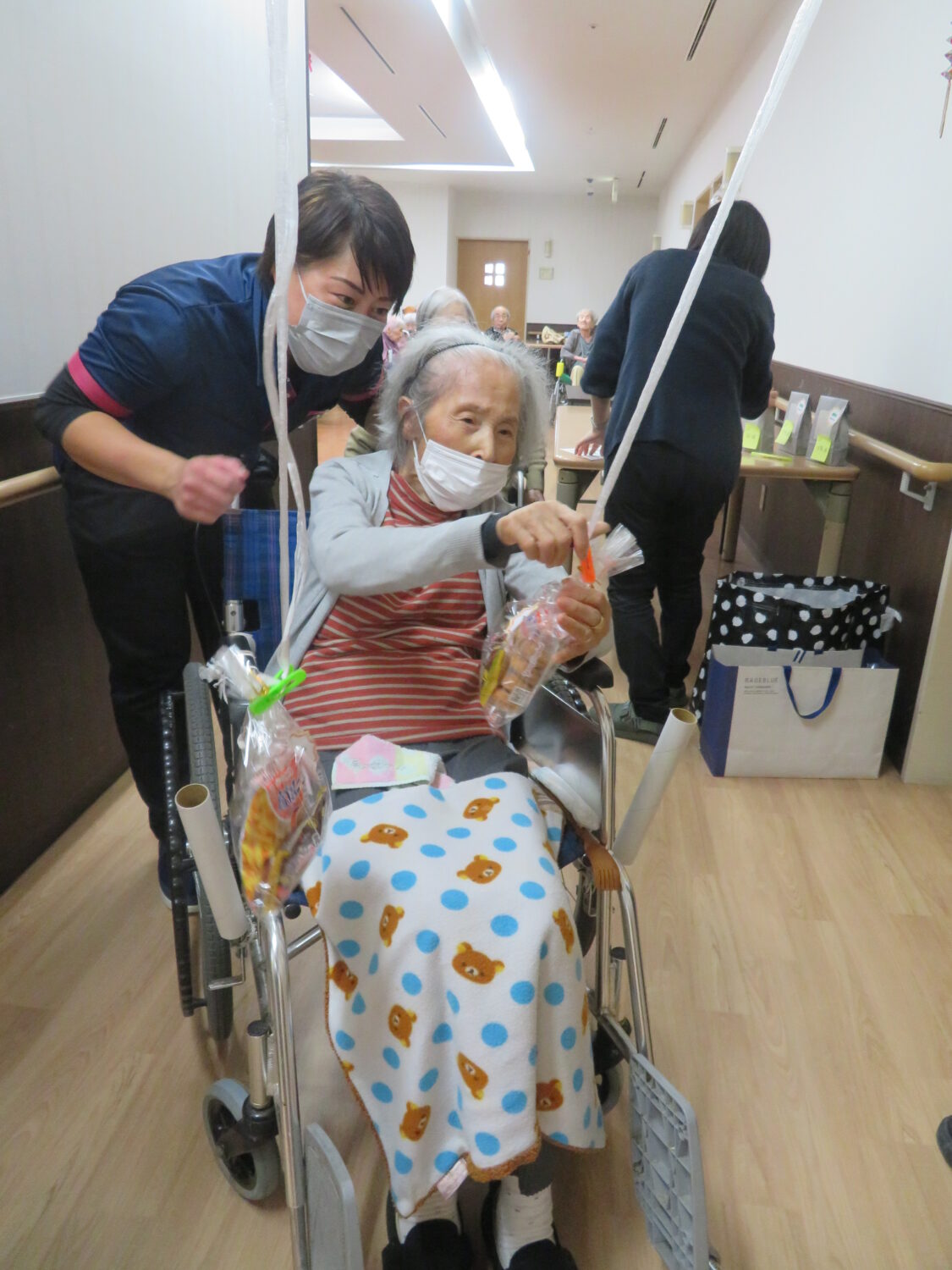 今年はハロウィンイベントを10月に行ったため、運動会を11月に開催しています! 11月4日は特養2階の運動会🚩お昼にお弁当を食べ、午後から運動会を行いました。 天気はとても良かったのですが、11月に入り風が冷たい・・・ ということで、屋内での運動会にしました。 たくさんの方が参加され、体操・玉入れ・大玉転がし・お菓子釣りなど、大盛り上がりの運動会でした! お菓子釣りで取ったおやつは、早速ユニットに戻って食べておられました♡駄菓子の詰め合わせにしたので、「懐かしい」というお声もありました(^▽^)/