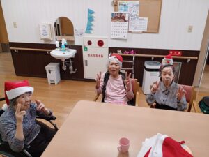 職員や希望される利用者様はサンタの帽子をかぶったり、カチューシャをして楽しみました♪