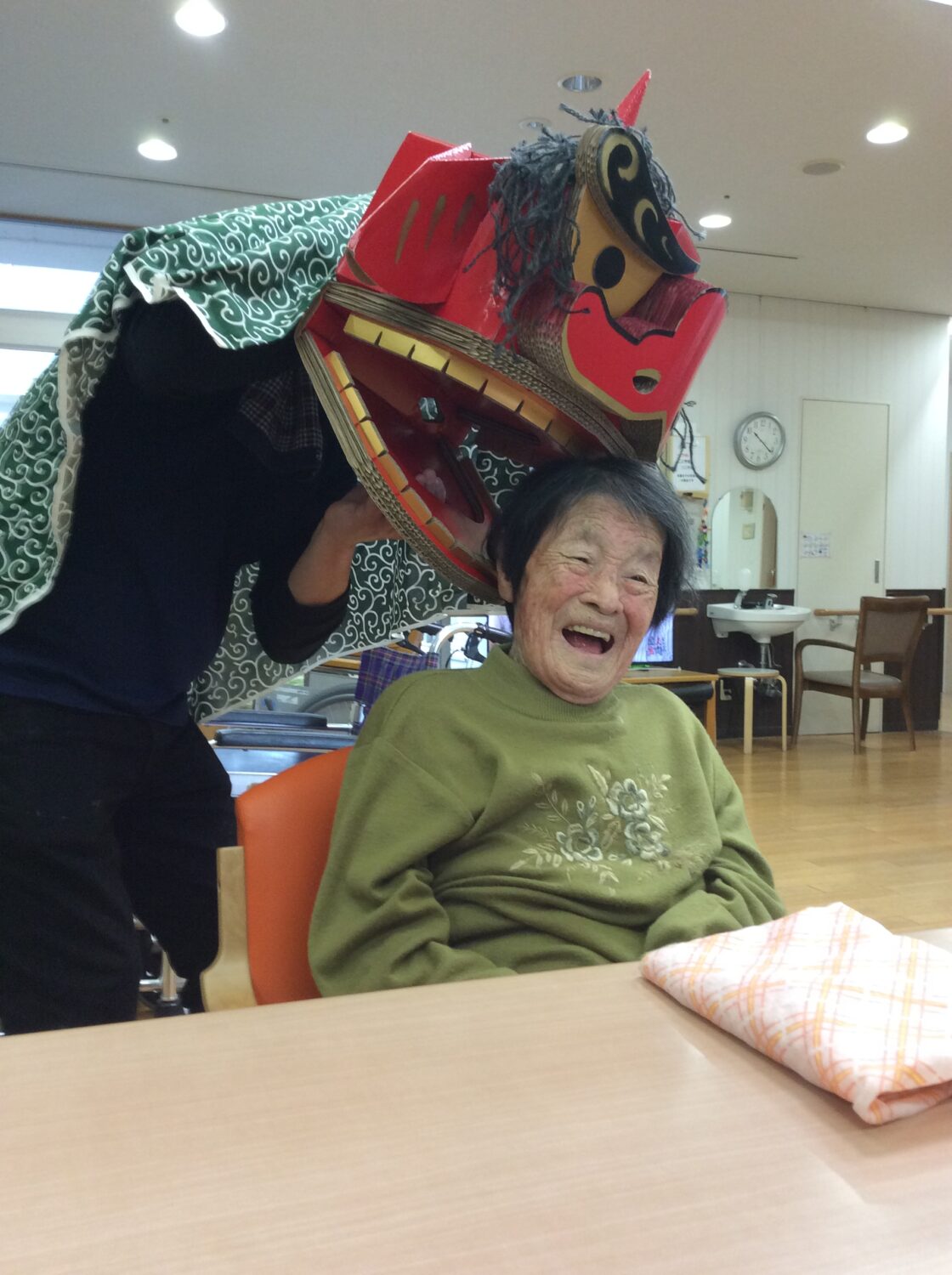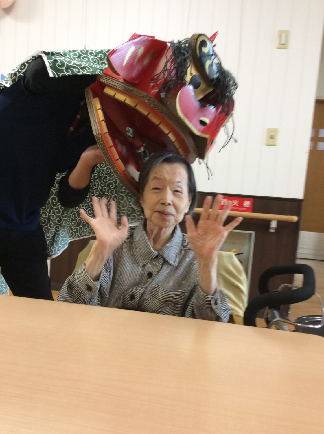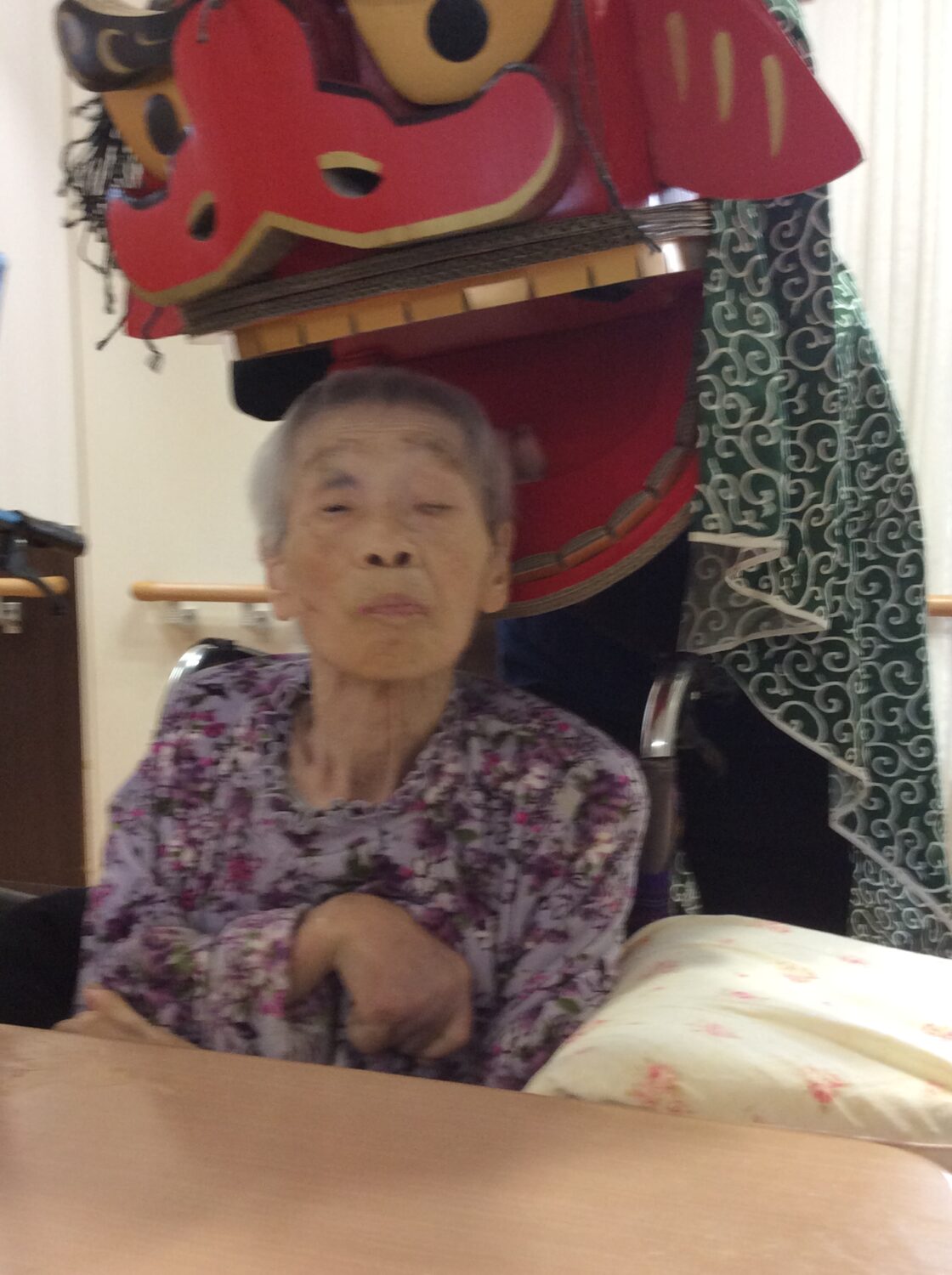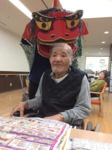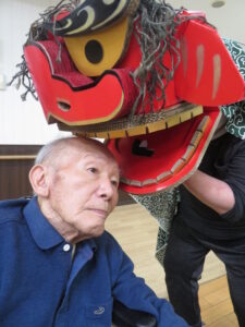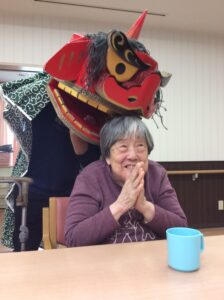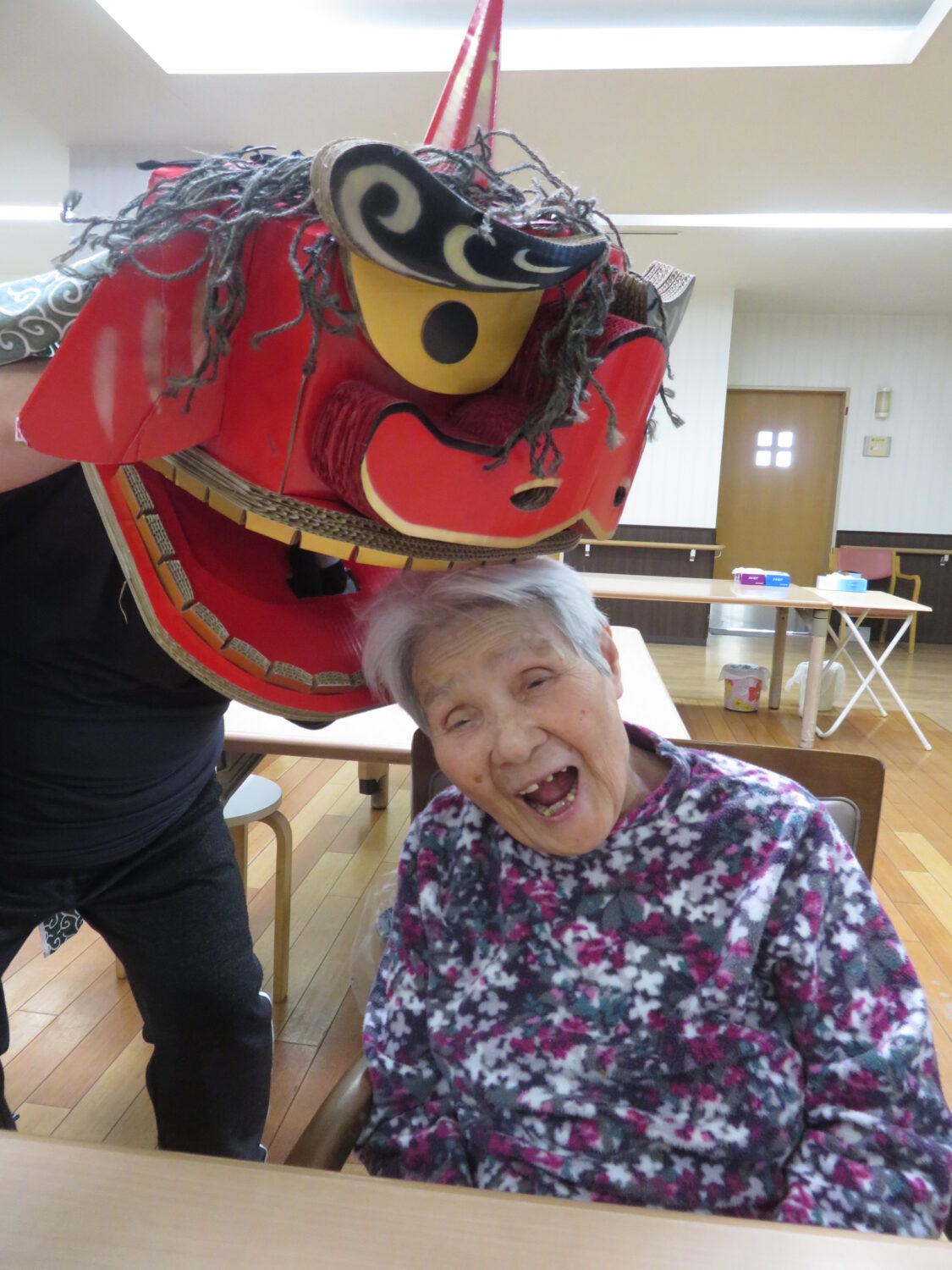 1月9日は施設全体で獅子舞、書初め、生け花などをしました。 特養の獅子舞の様子です✨