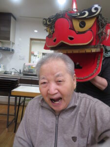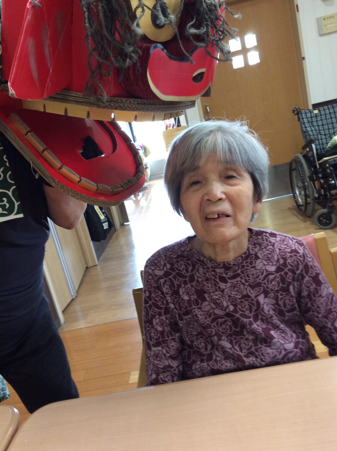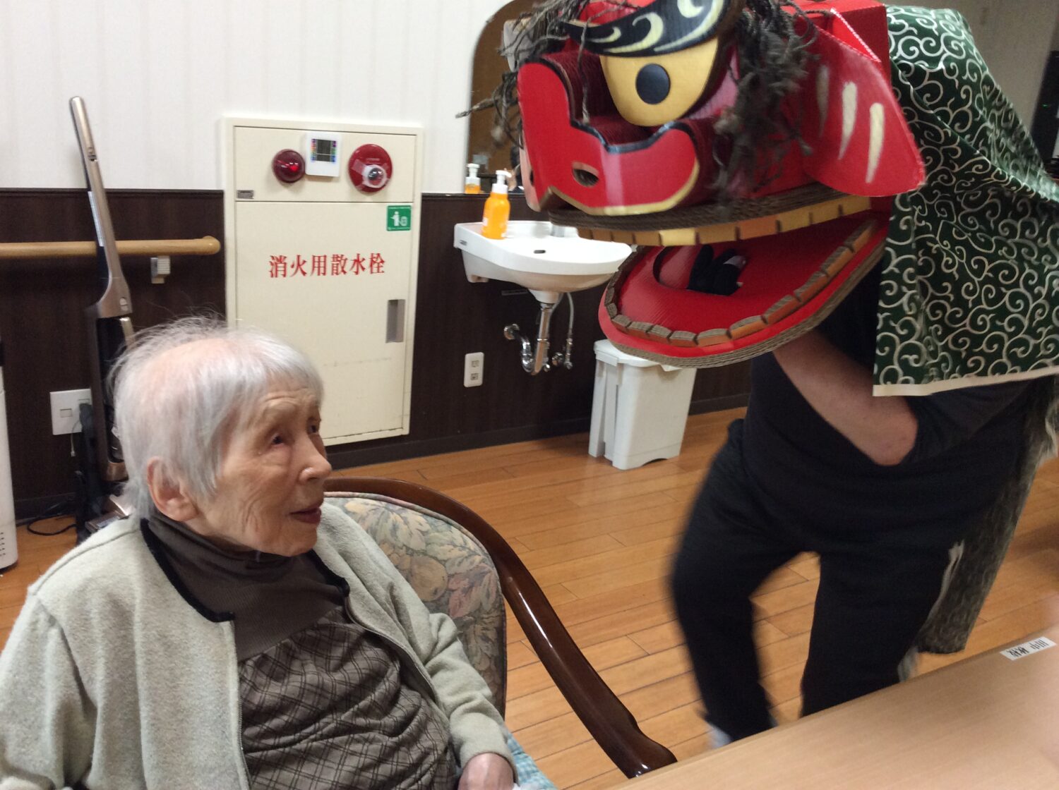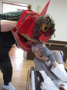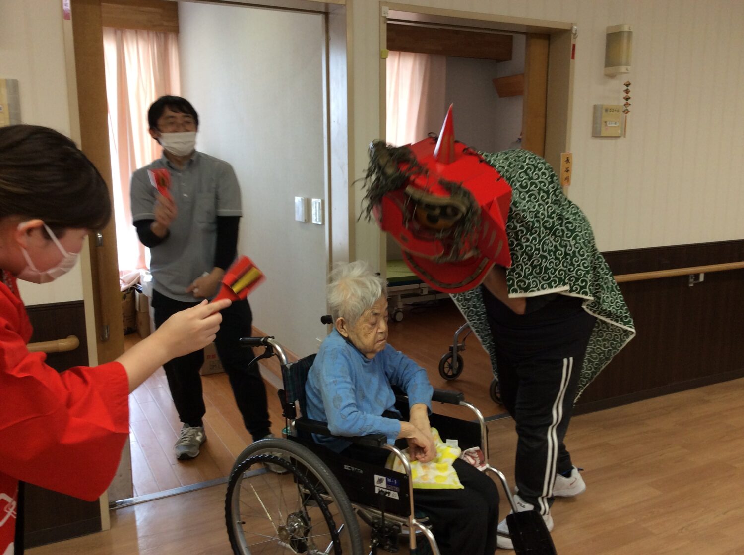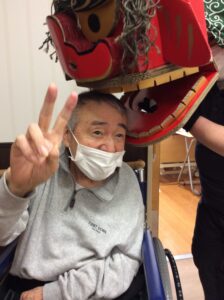 1月9日は施設全体で獅子舞、書初め、生け花などをしました。 特養の獅子舞の様子です✨