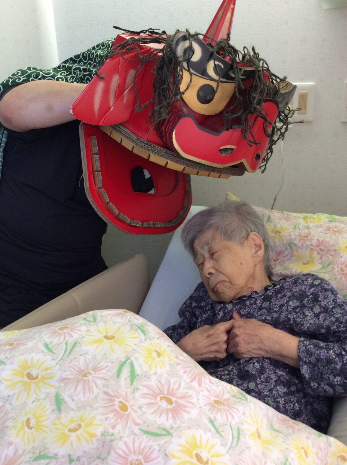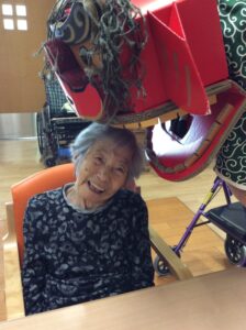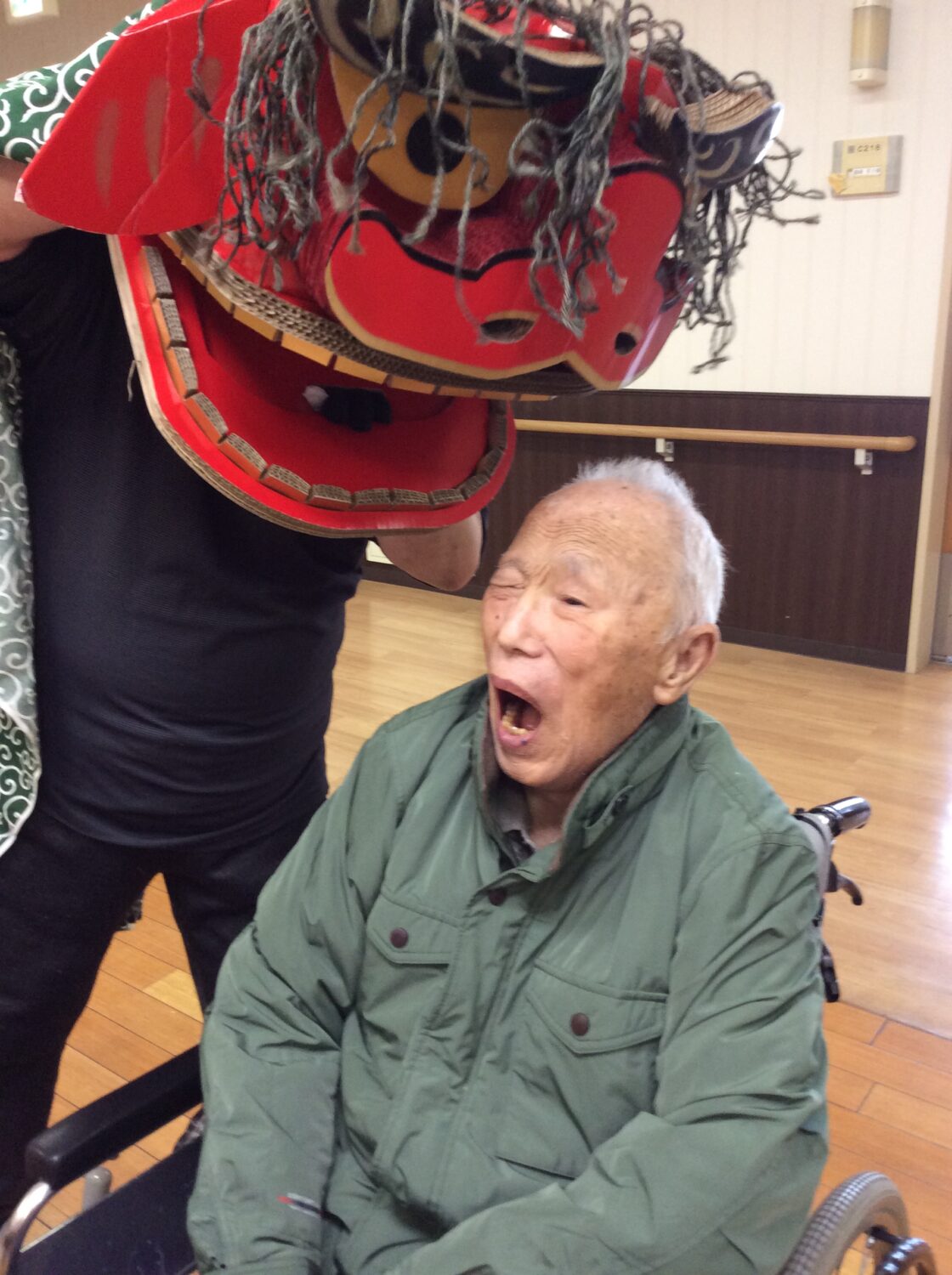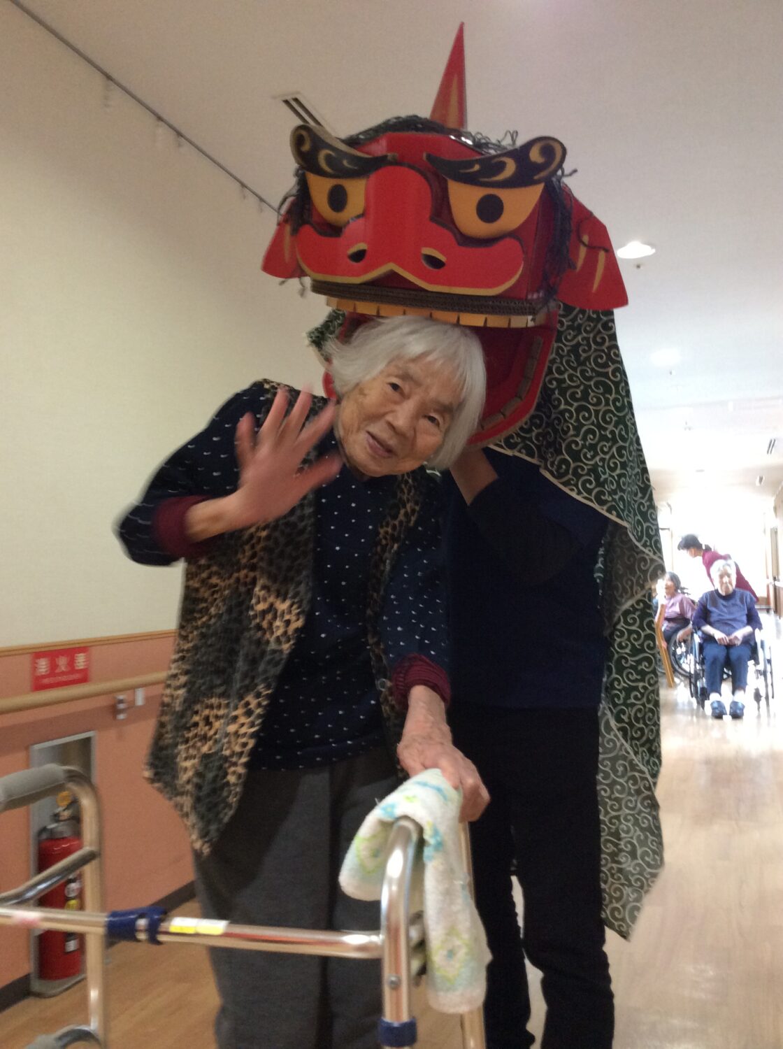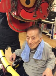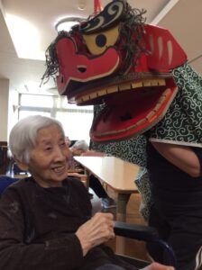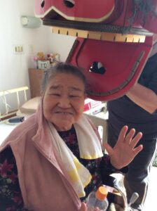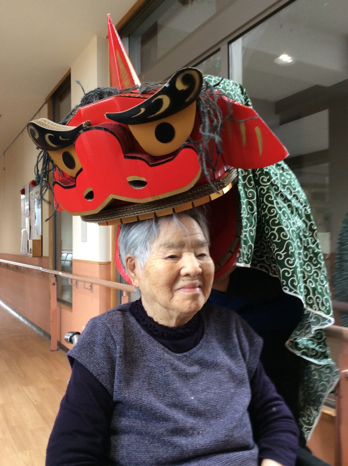 1月9日は施設全体で獅子舞、書初め、生け花などをしました。 特養の獅子舞の様子です✨