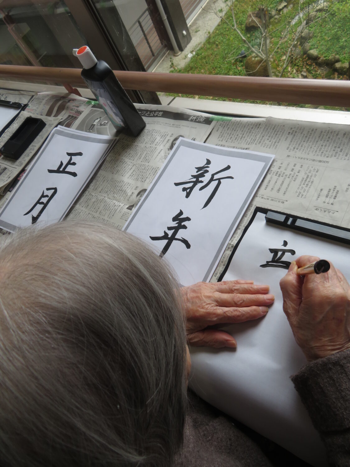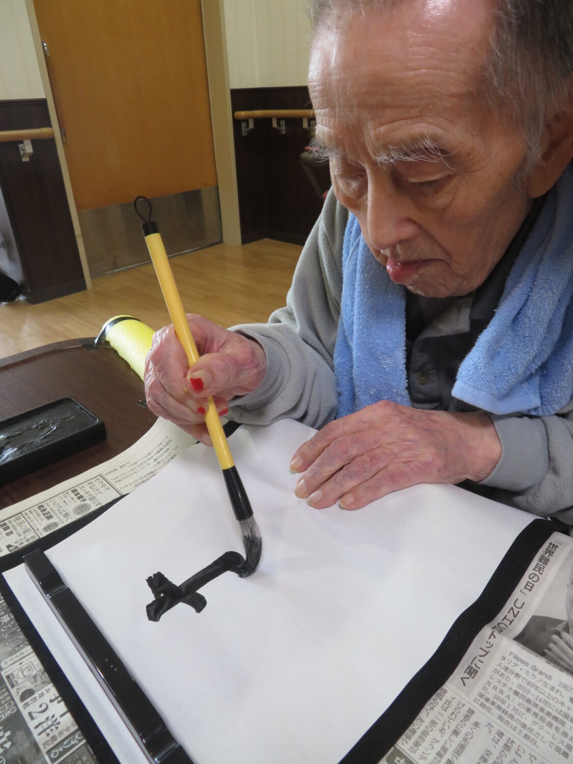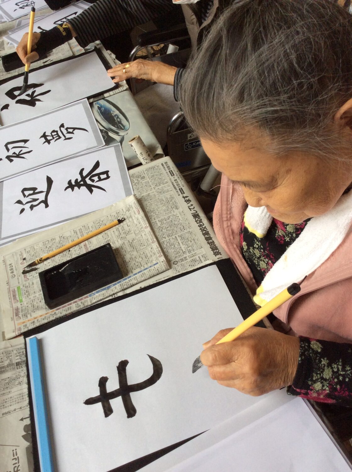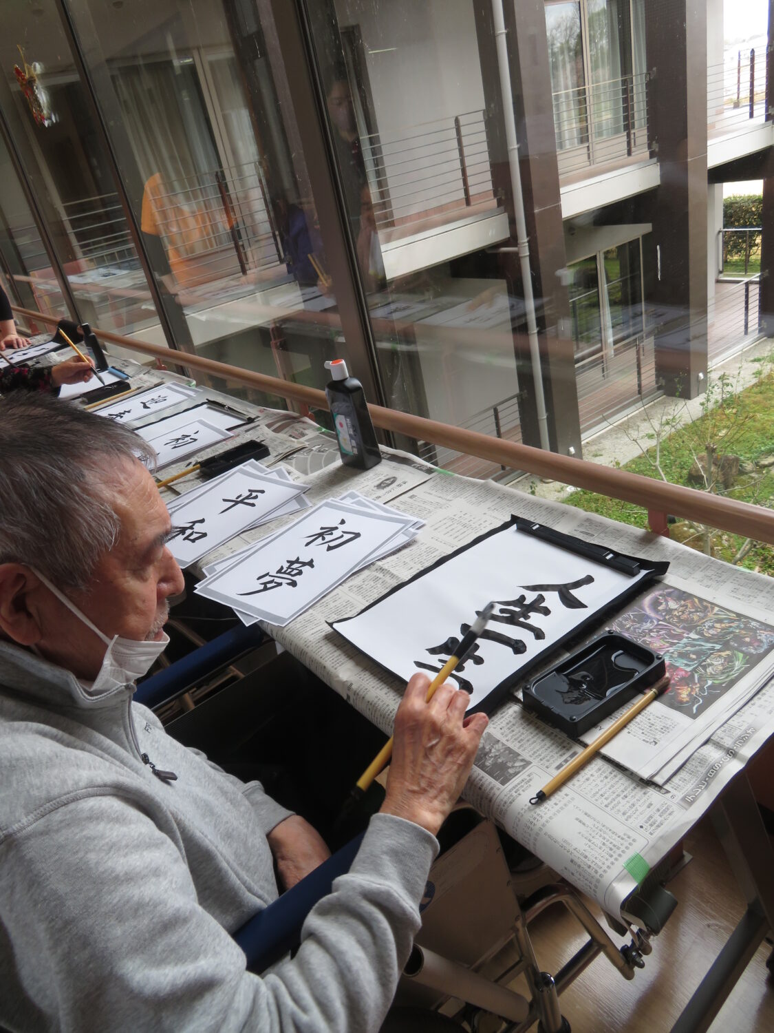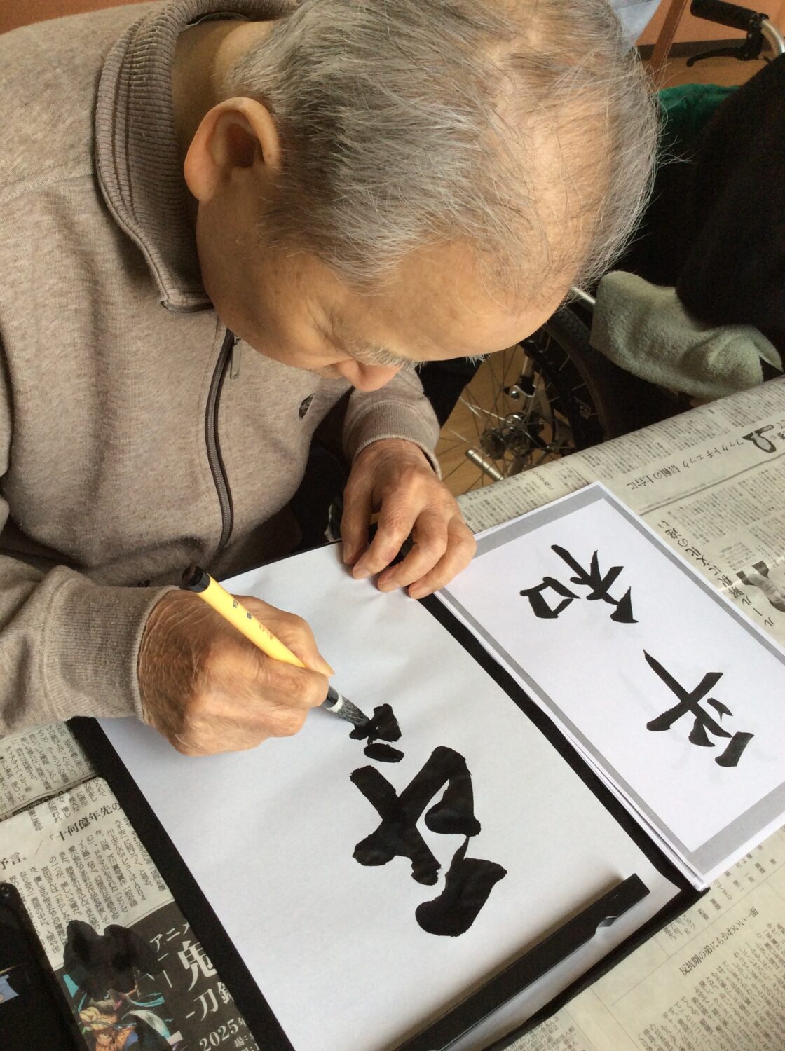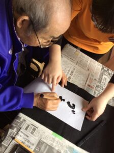 1月9日は施設全体で獅子舞、書初め、生け花などをしました。 特養の書初めの様子です✨