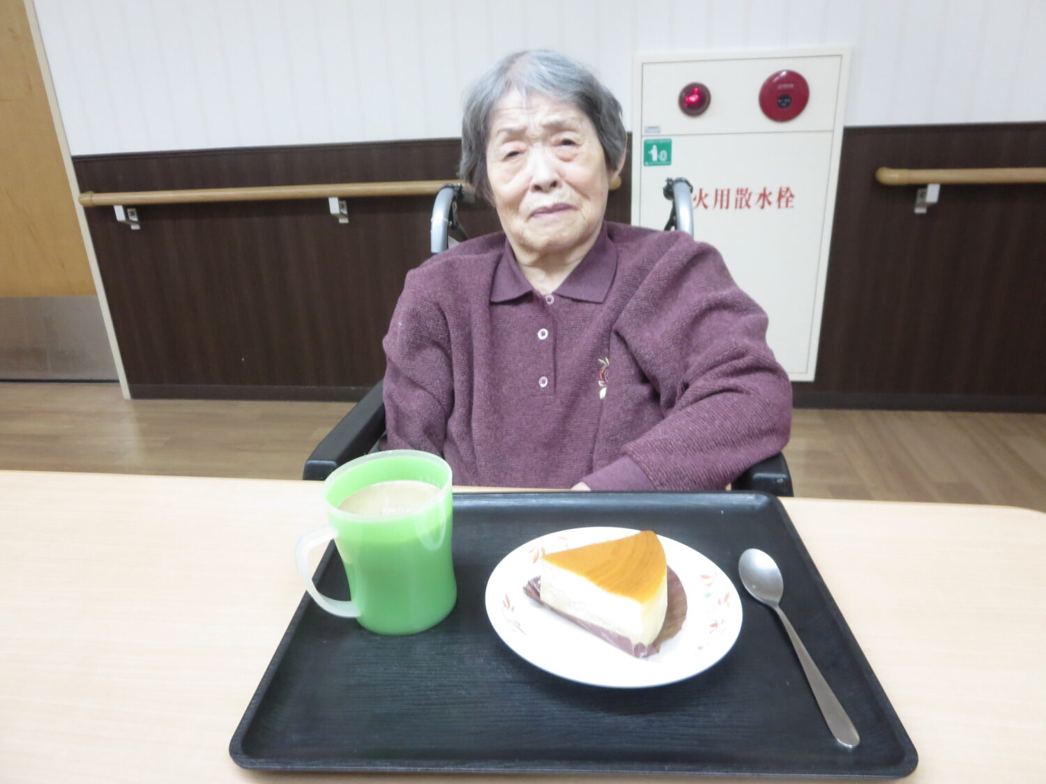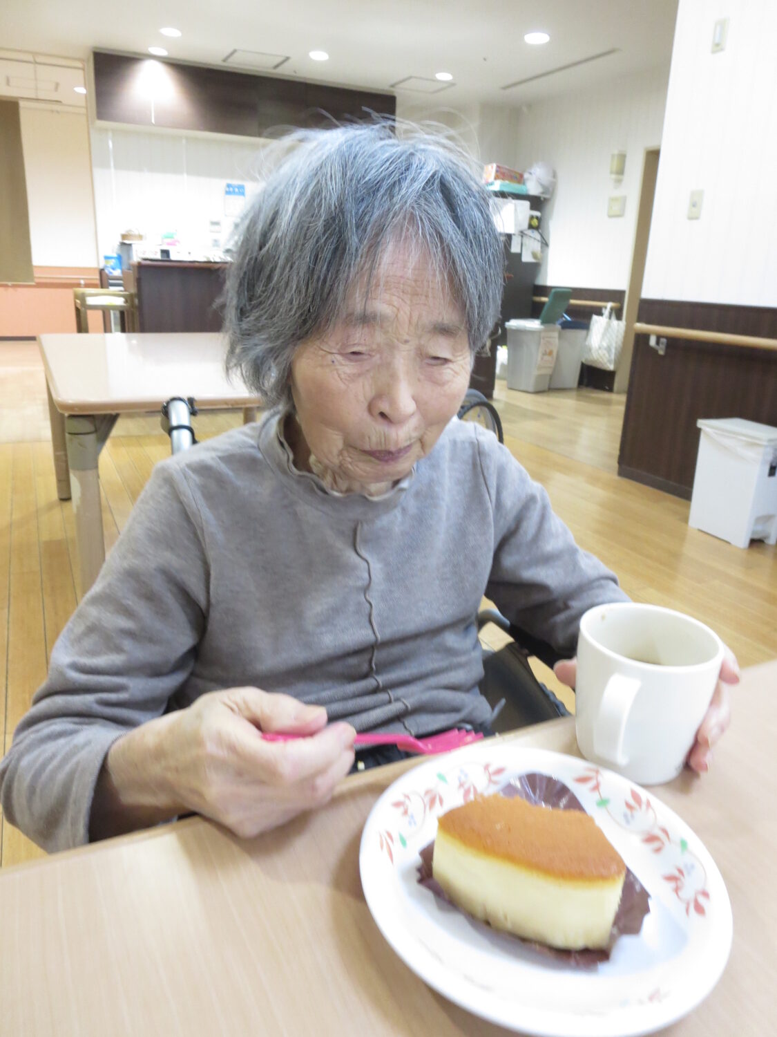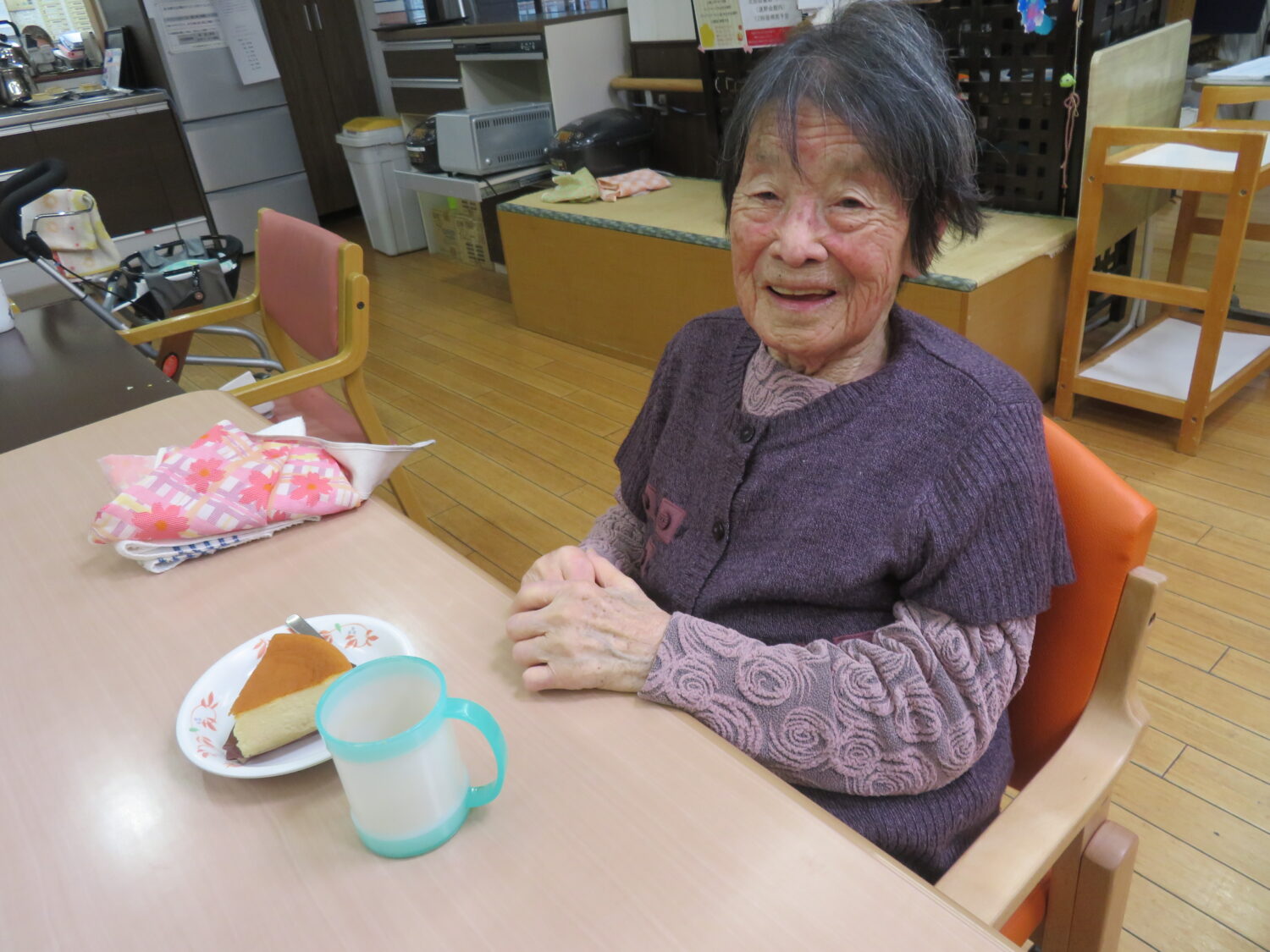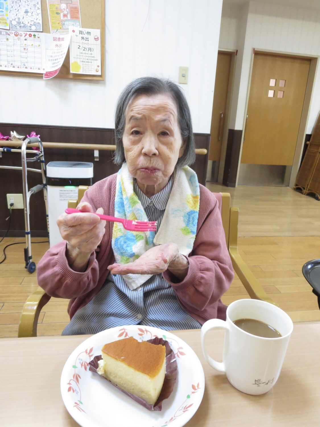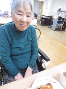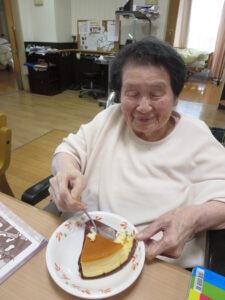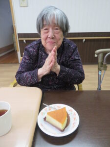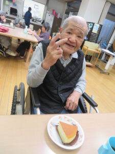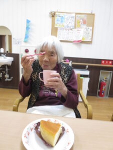 1月は3階でデリバリークラブを行い、ご希望された方がチーズケーキを楽しまれた!