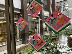 節分に向けた鬼のお面や、ひし餅とひな人形をイメージした壁飾りなどなど✏