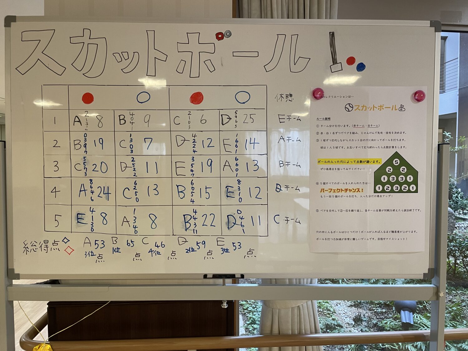 今回は、前回のサロンでも大変盛り上がった 「スカットボール」をチーム対抗で