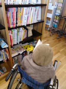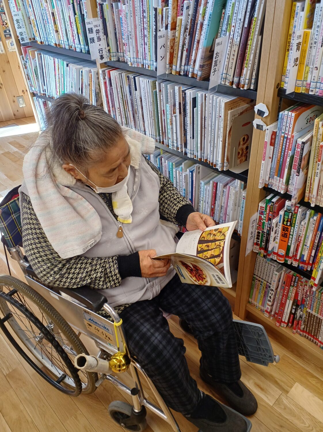 しがそせい苑の近くにある速野会館内北部図書館(本の湖)へ利用者様と出かけてきました♪ 図書館に行きたいと希望された2名の方と図書館内を散策📚 木の香りととっても落ち着く環境で、それぞれに興味のある本を見たり、借りたい本を探しておられました! 施設の近くに図書館や公園などがあり、とても恵まれた環境にあるなとつくづく感じました♡