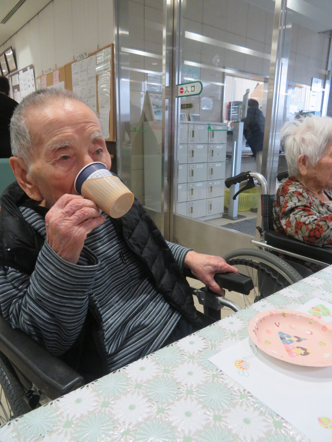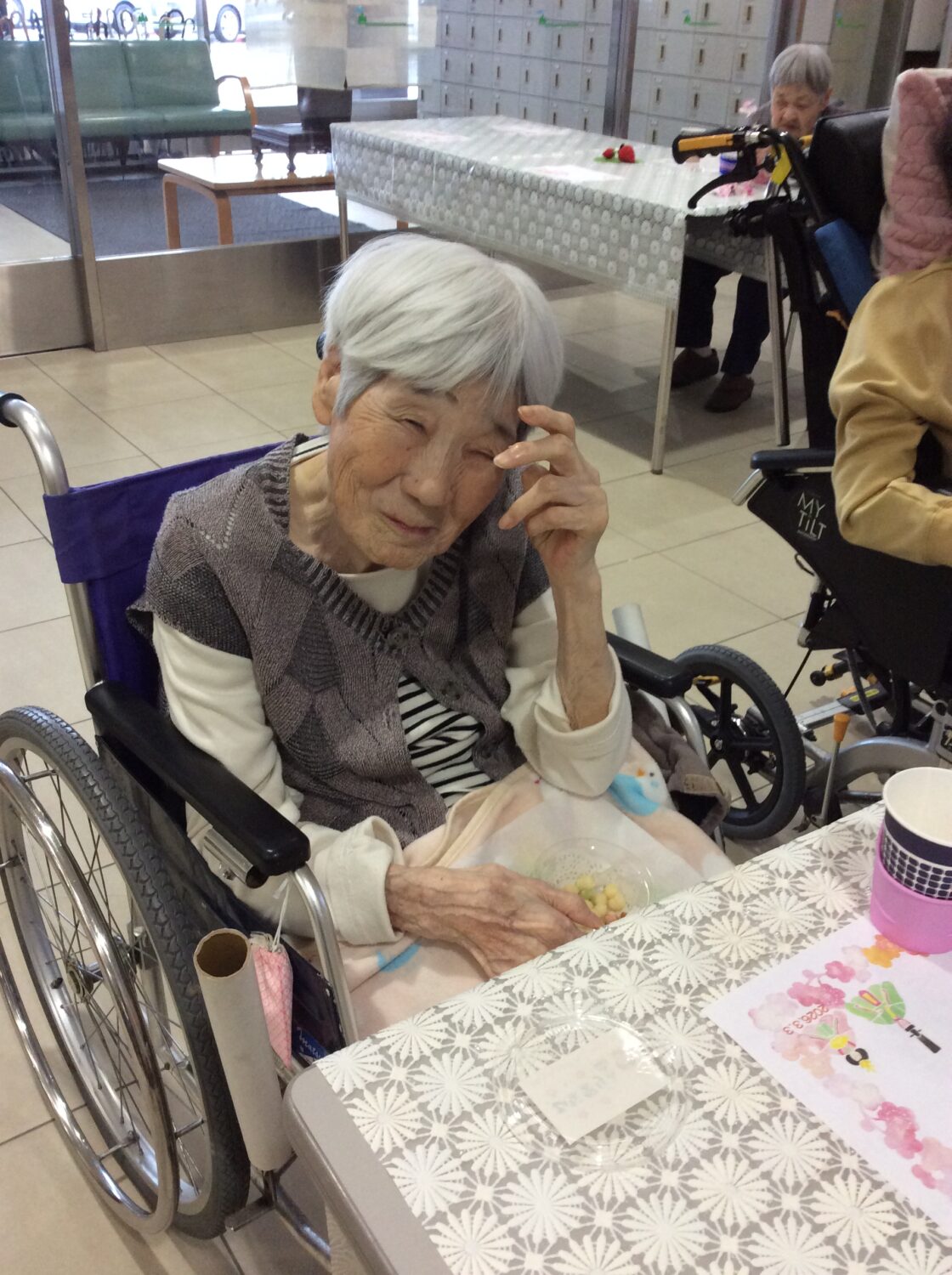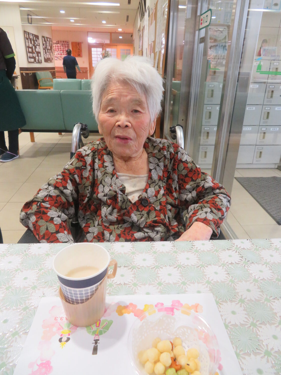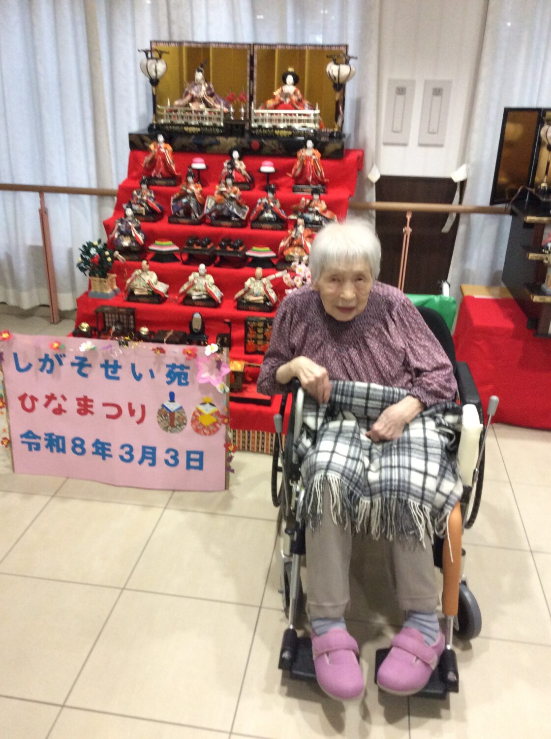 しがそせい苑では甘酒と雛あられ、綿菓子 でお祝いしました! 玄関ホールにはお雛さんを飾り、皆さん記念撮影もされていました📷