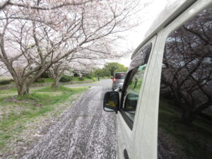 4月2日、3日、7日に ご希望者はお花見ドライブへ🚙 4月2日、3日は天気も良く、最高のお花見日和でした🌸 笠原桜公園で車を降りて、桜を楽しみました♡ 4月7日はあいにくの雨☔午後から晴れるという天気予報を期待していましたが・・・ 風も冷たく寒い1日となりました。 美崎公園、今浜、地球市民の森、笠原公園を1時間かけてお花見ドライブ🌸 車から降りることはできませんでしたが、皆さん車内から桜を楽しまれました!