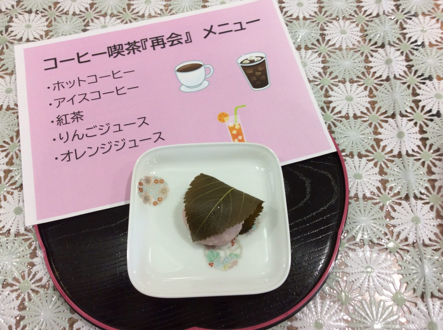 4月のコーヒー喫茶『再会』では 飲み物(コーヒー、紅茶、ジュース)のお供は・・・桜餅