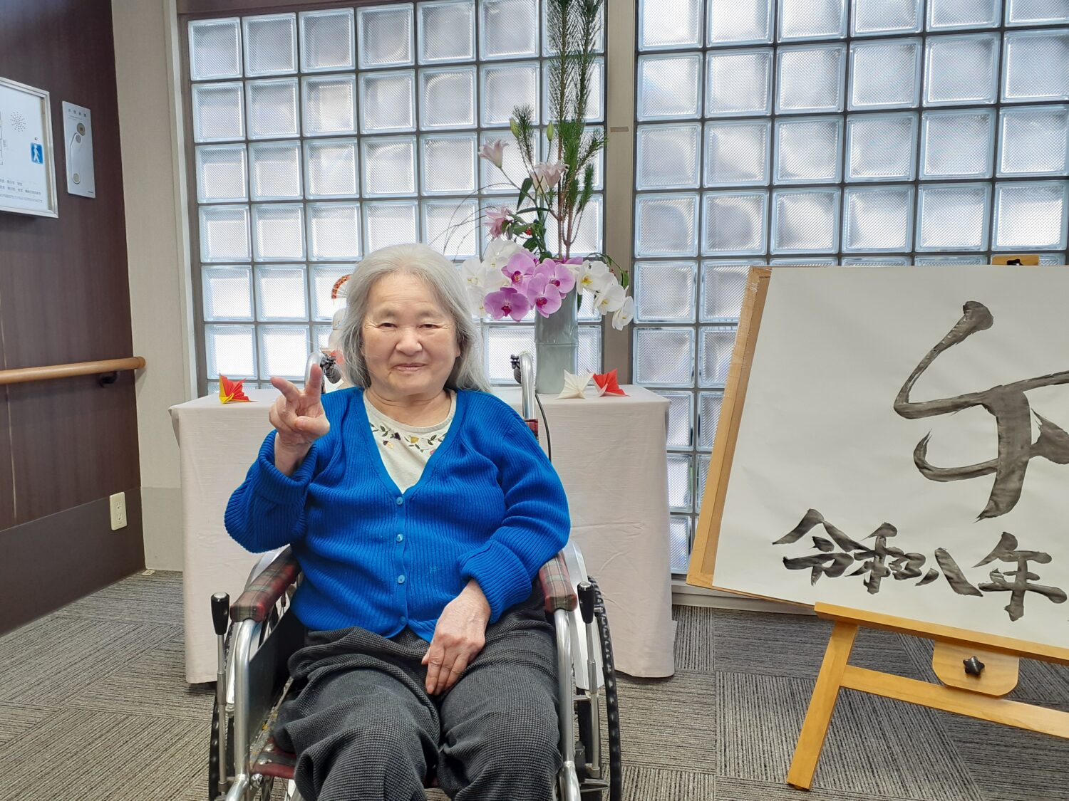 そせい苑玄関のお飾り前で、新年の写真を撮りました。