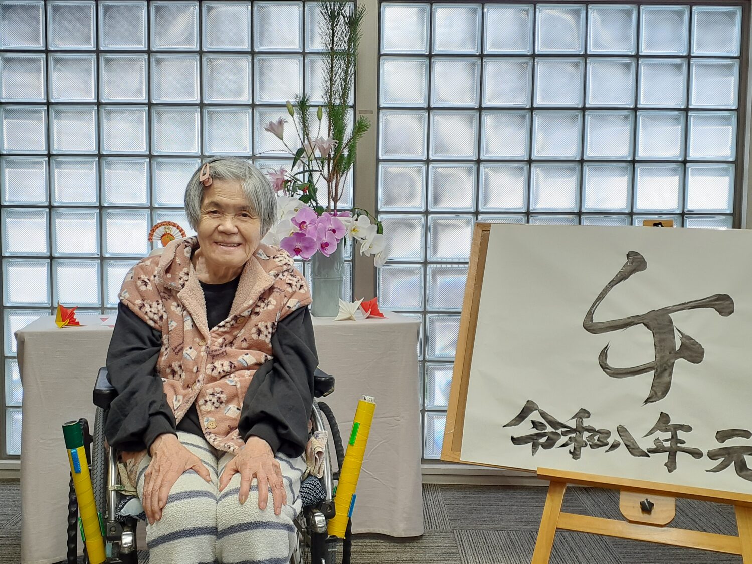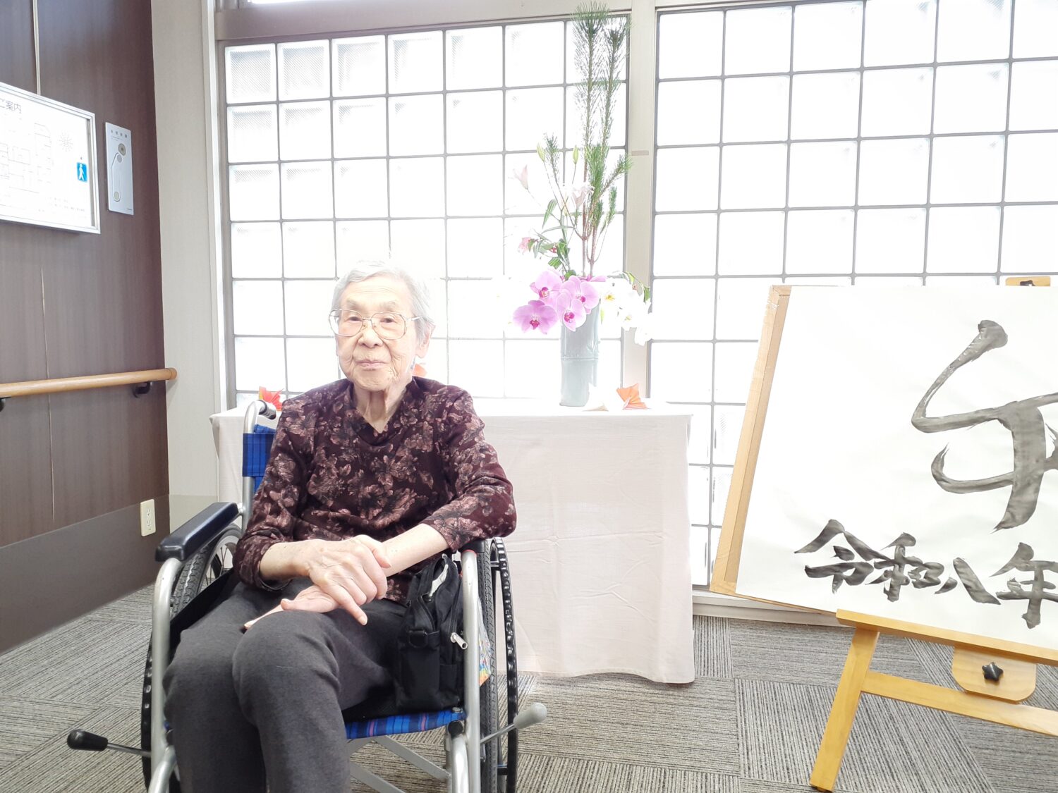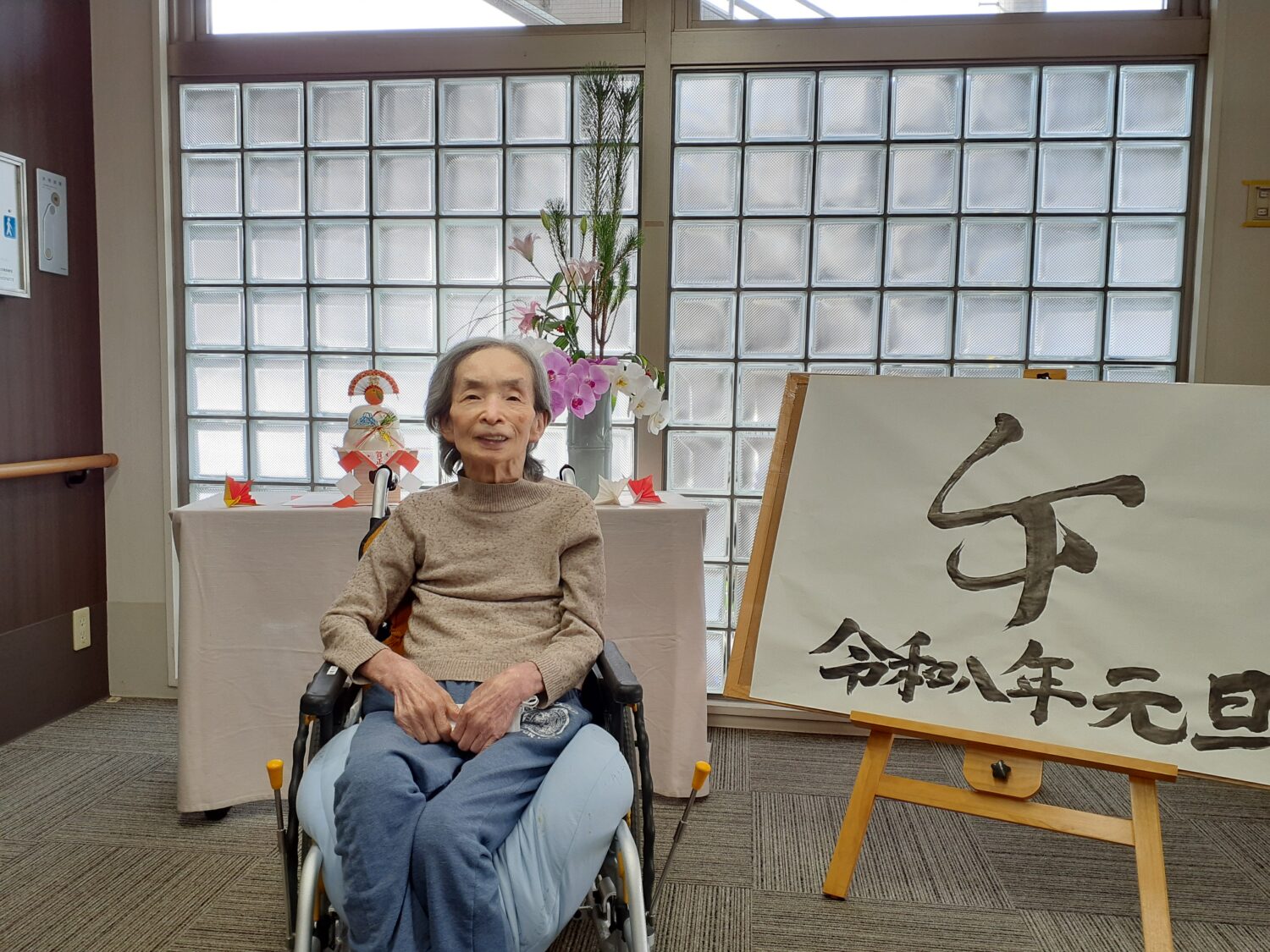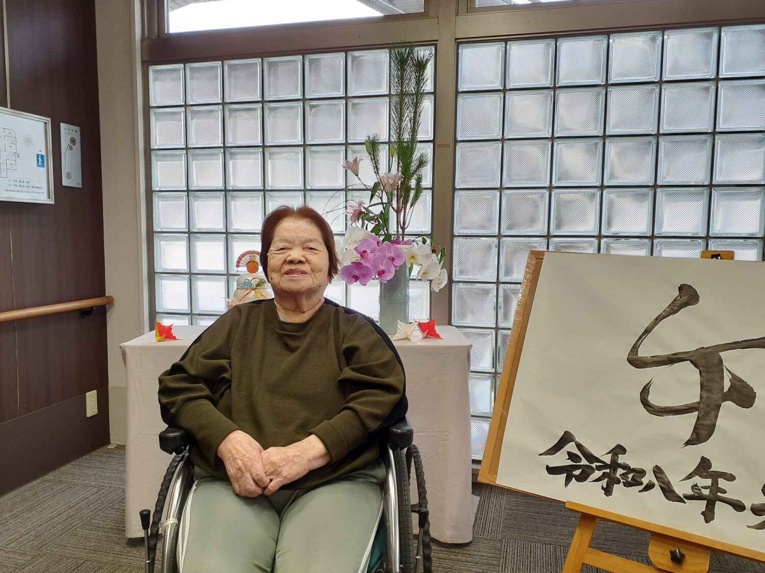 そせい苑玄関のお飾り前で、新年の写真を撮りました。