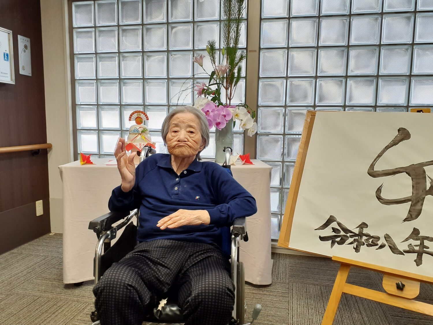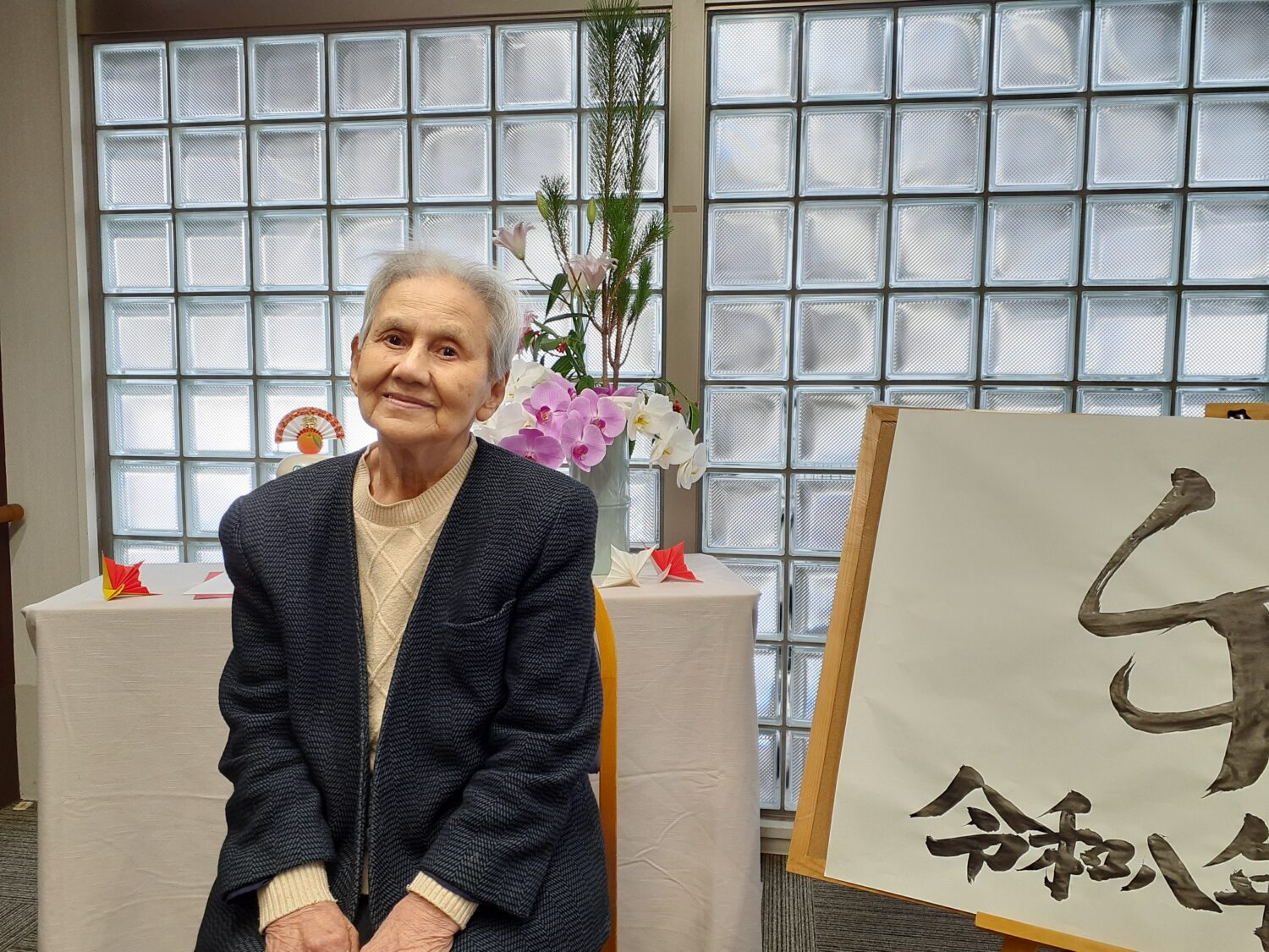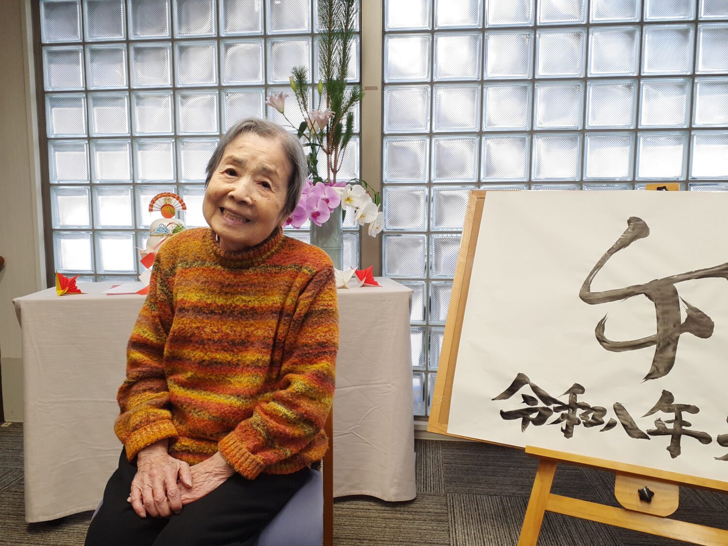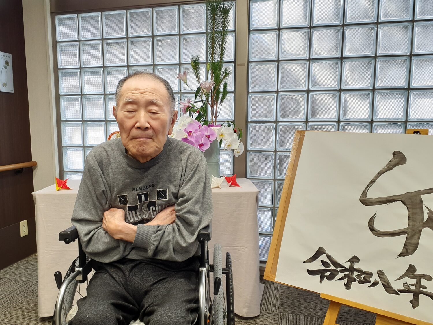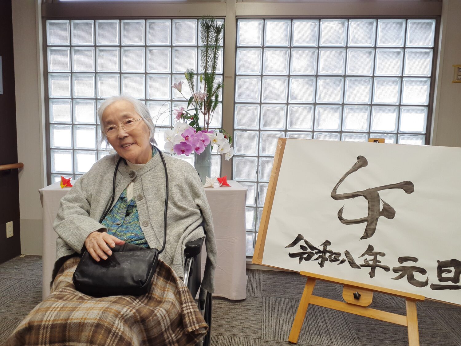 そせい苑玄関のお飾り前で、新年の写真を撮りました。