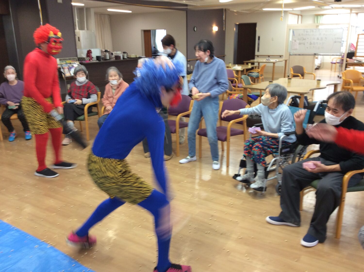 ということで本日はレクレーションにて豆まきをしました。