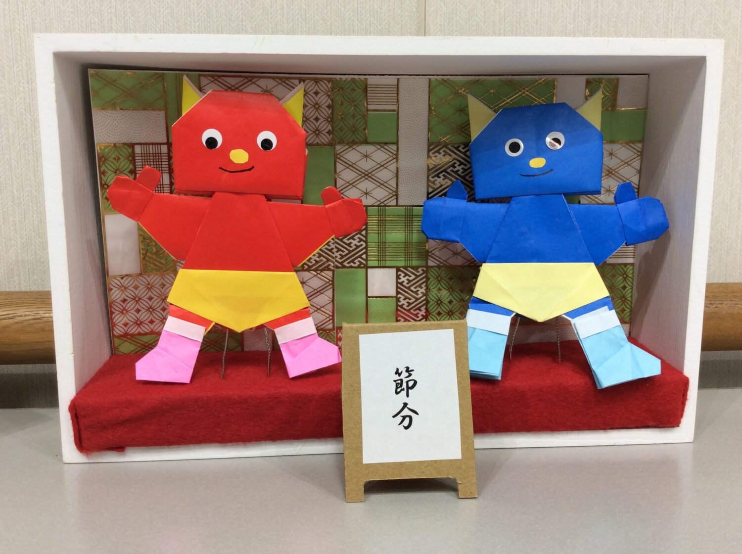 一番上の画像の鬼は利用者さんが折り紙で作ってくれたものです。