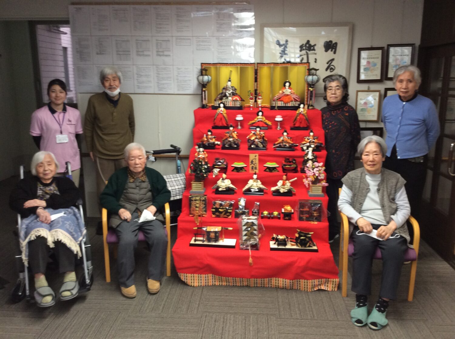 なんて、わいわい話しながらみんなで飾ったひな壇、見事完成。