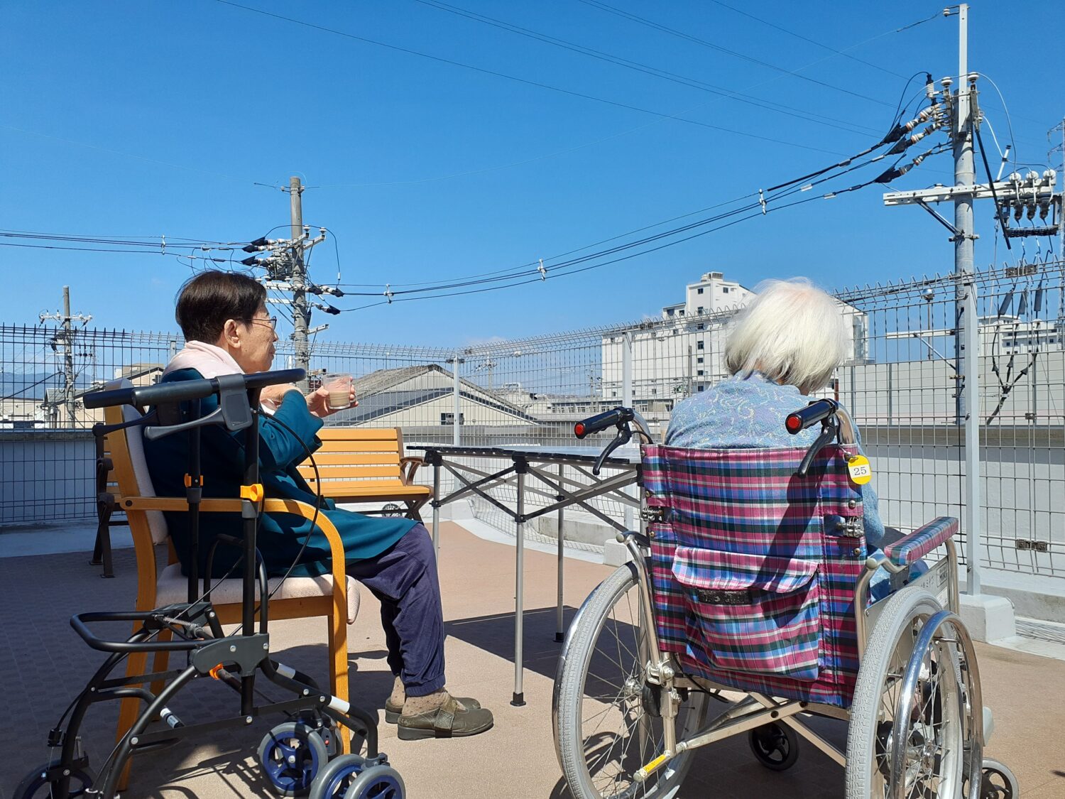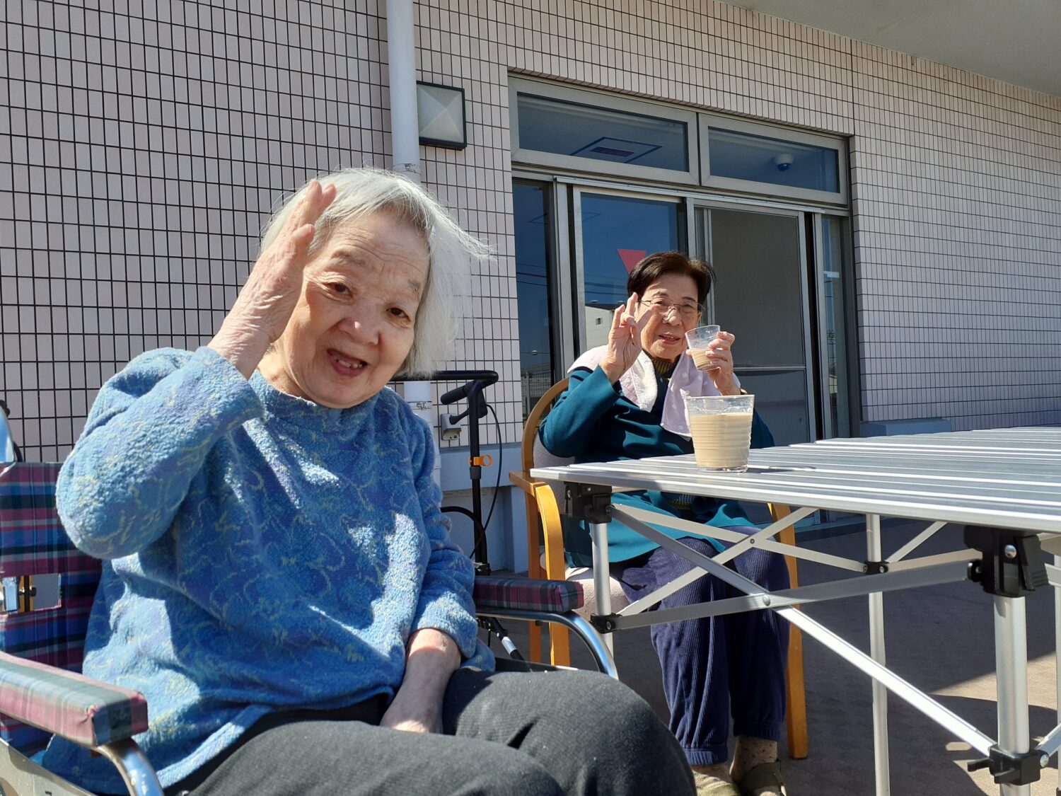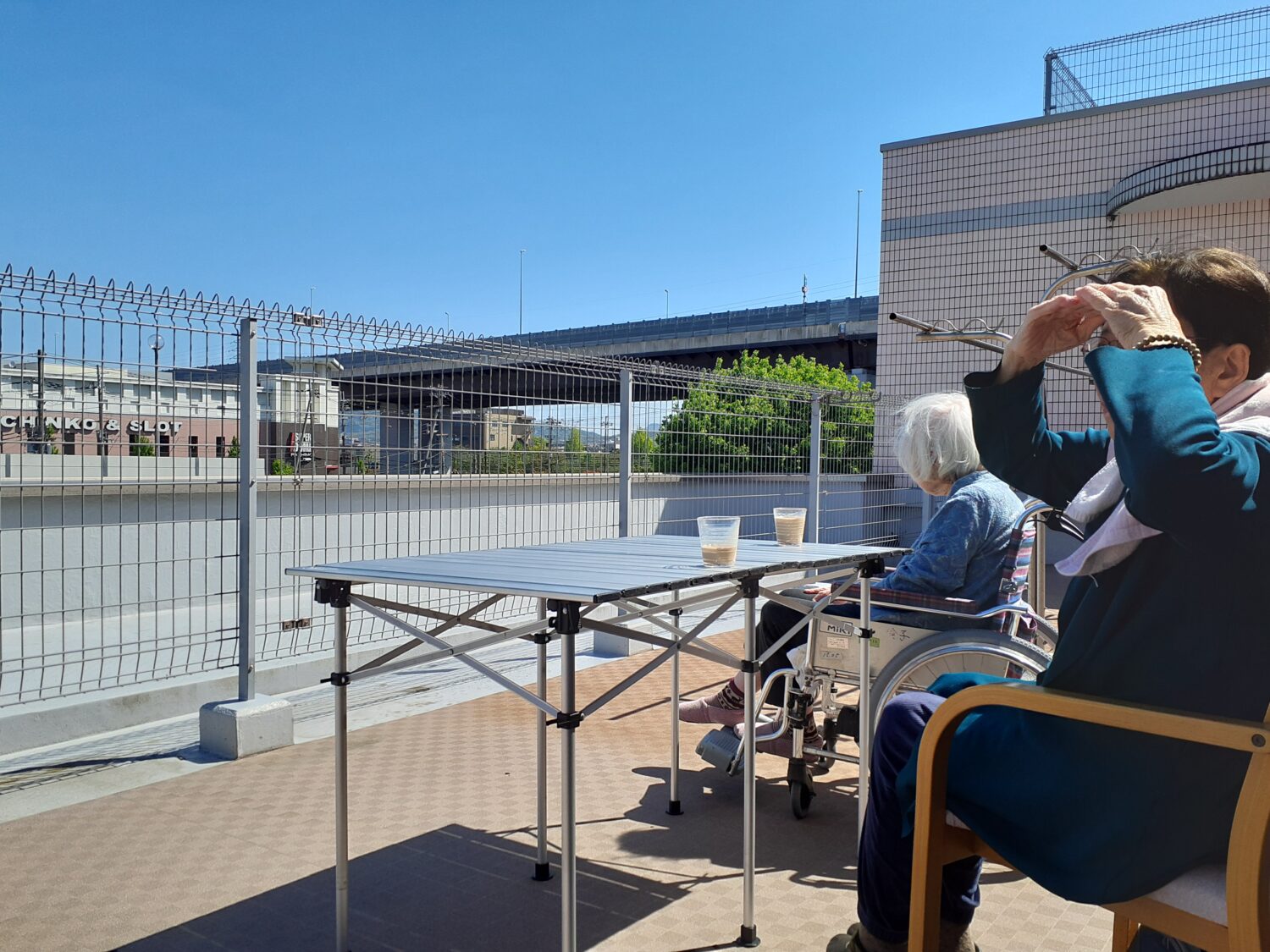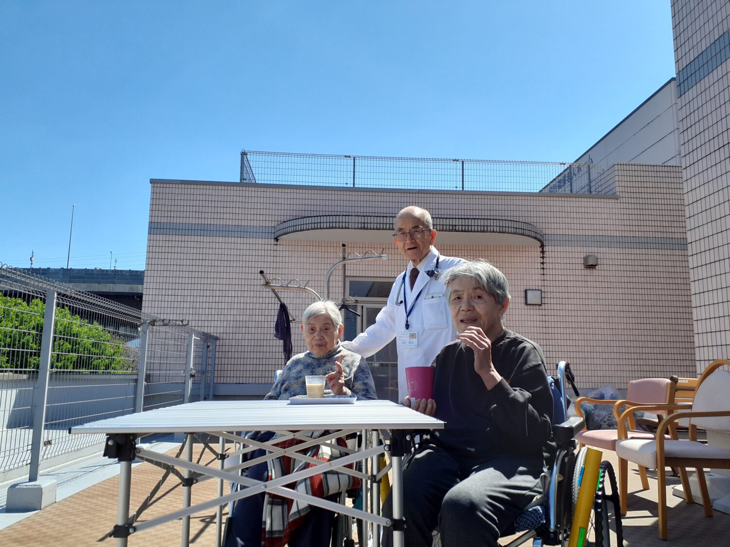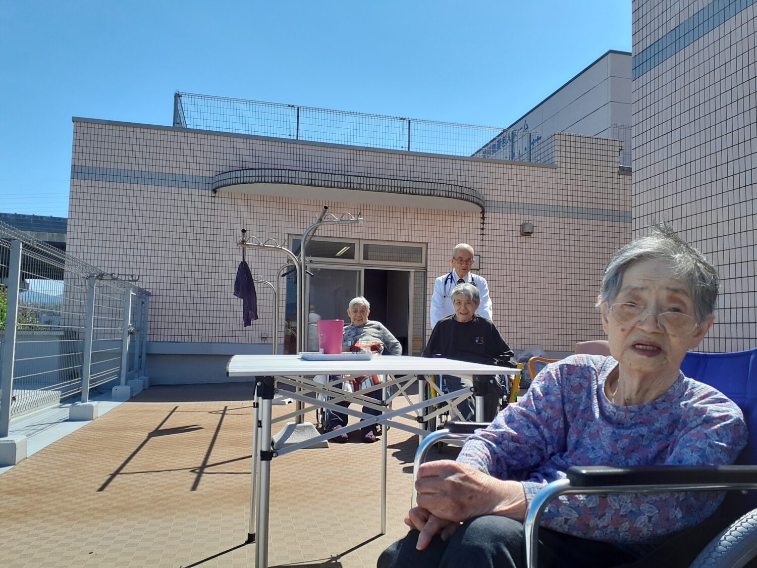 そせい苑3階のテラスで、日光浴をしました。